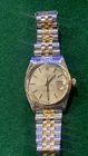 Available now is this excellent Rolex DateJust 16013 from 1979 Below are the features. • Model: Rlx Datejust 16013 . Serial #7,400,000 series . Year: 1983 • Movement: Rlx Calibre 3035 (automatic movement with quickset date) • Case: 36mm stainless steel with 18k yellow gold fluted bezel • Bezel: 18k yellow gold, fluted design • Dial: Silver dial with applied hour markers and luminous hands • Hands: Gold-tone hands with luminescent coating • Crystal: Acrylic crystal with Cyclops lens over the date • Water Resistance: 100 meters (330 feet) • Bracelet: Two-tone (Rolesor) stainless steel and 18k yellow gold Jubilee bracelet with a folding clasp • Functions: Time, date display at 3 o’clock (quickset), power reserve of approximately 48 hours • Special Features: Classic two-tone design with champagne dial, iconic fluted bezel, versatile and elegant for both formal and casual occasions This comes with No Box and papers. It looks sharp, and runs excellent. Has recently been serviced. Crystal has some small scratches, that can be buffed but is not overly noticeable. See photos measurements on bracelet I’m 7-1/2” inches and there is still room to fit larger to 8”.