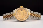 Mon-Thurs: 8:30 am – 5:30 pm (CST) Friday 8:30 am - 2:30 pm (CST) Lifetime Trade-Up Guarantee 30 Days Return Policy 1 Year Warranty Rolex Datejust 69173 Ladies 2Tone 18K Yellow Gold Stainless Steel Watch BeckerTime is proud to offer this impressive Ladies 26mm 2Tone 18K Yellow Gold & Stainless Steel Rolex Datejust Watch model ref #69173 with a Gold Champagne Dial. And that's not all...This is the desired QUICKSET MODEL with the SAPPHIRE CRYSTAL and a Rolex Jubilee band. This Rolex is in SUPER EXCELLENT CONDITION . SKU: 9268905AMT 1 Year Warranty Specifications Brand Rolex Model Name Datejust Model No. 69173 Gender Ladies Case Diameter 26mm Box No Papers No Condition Preowned - Super Excellent Condition (See Condition Grading Scale below) Warranty Yes - BeckerTime 1 Year Warranty Lifetime Trade-Up Guarantee This Rolex comes with the BeckerTime Lifetime Trade-Up Guarantee Watch Features Movement Rolex officially certified chronometer self-winding automatic movement with QUICKSET DATE function Dial Rolex GOLD CHAMPAGNE dial with stick markers Bezel Rolex 18k yellow gold FLUTED bezel Crystal Aftermarket Sapphire Crystal Case Rolex stainless steel case Band Rolex 2tone 18k yellow gold & stainless steel Jubilee band with Rolex signed clasp Max Wrist Size 6 1/2" wrist Additional Links Available for an additional cost. Link adds 1/4" AS WITH ALL OF OUR WATCHES, AUTHENTICITY IS GUARANTEED! THIS IS A FILE PHOTO. On This Item On All Items Condition Grading Scale Brand New 10 New. Perfect condition and never worn. The watch has the original manufactures protective plastic (if applicable). It may or may not come with original box or papers. It is working properly, keeping very good time. Super Excellent Condition 8.5 to 9.5 Super nice. Light signs of wear. Watches with the original band will have moderate to minimal stretch between the links. The watch is working properly, keeping good time. Never Worn 9.8 to 9.9 New. Perfect condition and never worn. The watch has the original manufactures protective plastic (if applicable). It may or may not come with original box or papers. It is working properly, keeping very good time. Excellent Condition 7.0 to 8.5 Nice. Signs of wear. Depending on the age of the timepiece, watches with the original band will have loose or moderate stretch and wear between the links. The watch is working properly, keeping good time, but may gain or lose up to 30 seconds over 24 hours. Super Mint Condition 9.7 to 9.8 Perfect. Looks never worn. As close to new as you can get for a preowned watch. This is the equivalent of a new watch that does not have the original manufactures protective plastic (if applicable). If you remove the protective plastic from a brand new watch, and have not yet worn the watch, it is now in Super Mint Condition. It may or may not come with original box or papers. It is working properly, keeping very good time. Fair Condition 5.0 to 7.0 Fair. Signs of heavy wear. Watch may have a few dings, nicks, or deep scratches The band has severe stretch between the links. The watch is working, but may gain or lose a few minutes over 24 hours. Mint Condition 9.5 to 9.7 Near perfect. Looks like new on the wrist. Signs of wear are only visible with a loupe. The band has no stretch or wear. The watch is working properly, keeping very good time. Poor Condition Less than 5 Poor. Signs of extreme heavy wear, damage, or abuse. Major cosmetic and/or mechanical flaws that directly affect the integrity of the watch. The watch may be missing parts and/or may not run at all. We do not recommend this watch to be worn in this condition. Requires a lot of work to be made wearable. Brand New 10 New. Perfect condition and never worn. The watch has the original manufactures protective plastic (if applicable). It may or may not come with original box or papers. It is working properly, keeping very good time. Never Worn 9.8 to 9.9 New. Perfect condition and never worn. The watch has the original manufactures protective plastic (if applicable). It may or may not come with original box or papers. It is working properly, keeping very good time. Super Mint Condition 9.7 to 9.8 Perfect. Looks never worn. As close to new as you can get for a preowned watch. This is the equivalent of a new watch that does not have the original manufactures protective plastic (if applicable). If you remove the protective plastic from a brand new watch, and have not yet worn the watch, it is now in Super Mint Condition. It may or may not come with original box or papers. It is working properly, keeping very good time. Mint Condition 9.5 to 9.7 Near perfect. Looks like new on the wrist. Signs of wear are only visible with a loupe. The band has no stretch or wear. The watch is working properly, keeping very good time. Super Excellent Condition 8.5 to 9.5 Super nice. Light signs of wear. Watches with the original band will have moderate to minimal stretch between the links. The watch is working properly, keeping good time. Excellent Condition 7.0 to 8.5 Nice. Signs of wear. Depending on the age of the timepiece, watches with the original band will have loose or moderate stretch and wear between the links. The watch is working properly, keeping good time, but may gain or lose up to 30 seconds over 24 hours. Fair Condition 5.0 to 7.0 Fair. Signs of heavy wear. Watch may have a few dings, nicks, or deep scratches The band has severe stretch between the links. The watch is working, but may gain or lose a few minutes over 24 hours. Poor Condition Less than 5 Poor. Signs of extreme heavy wear, damage, or abuse. Major cosmetic and/or mechanical flaws that directly affect the integrity of the watch. The watch may be missing parts and/or may not run at all. We do not recommend this watch to be worn in this condition. Requires a lot of work to be made wearable. Why Buy From BeckerTime About Us BeckerTime began in 1998 as the passion of father-son watch enthusiasts. We began selling on eBay in January 1999. We are one of 