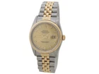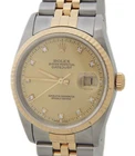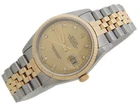 Mon-Thurs: 8:30 am – 5:30 pm (CST) Friday 8:30 am - 2:30 pm (CST) Lifetime Trade-Up Guarantee 30 Days Return Policy 1 Year Warranty Rolex Datejust Mens 18K Gold & Stainless Steel Watch FACTORY Diamond Dial 16233 BeckerTime is proud to offer this impressive Men's 36mm Rolex 2Tone 18K Yellow Gold & Stainless Steel Datejust Watch ref #16233 with a Rolex Factory Gold Champagne Diamond Dial . And it get's better...This is the desired QUICKSET MODEL with the SAPPHIRE CRYSTAL and a Rolex Jubilee band. This Rolex is in SUPER EXCELLENT CONDITION . SKU: E664808AMT 1 Year Warranty Specifications Brand Rolex Model Name Datejust Model No. 16233 Gender Men's Case Diameter 36mm Box No Papers No Condition Preowned - Super Excellent Condition (See Condition Grading Scale below) Warranty Yes - BeckerTime 1 Year Warranty Lifetime Trade-Up Guarantee This Rolex comes with the BeckerTime Lifetime Trade-Up Guarantee Watch Features Movement Rolex officially certified chronometer self-winding automatic movement with QUICKSET Date function Dial Rolex GOLD CHAMPAGNE dial with 10 round brilliant diamonds. This is a factory Rolex diamond dial! Bezel Rolex solid 18k yellow gold FLUTED bezel Crystal Aftermarket Sapphire Crystal Case Rolex stainless steel case Band Rolex 2tone 18k yellow gold and stainless steel Jubilee bracelet with Rolex signed clasp Max Wrist Size 7 1/2" wrist Additional Links Available for an additional cost. Link adds 1/4" AS WITH ALL OF OUR WATCHES, AUTHENTICITY IS GUARANTEED! THIS IS A FILE PHOTO. On This Item On All Items Condition Grading Scale Brand New 10 New. Perfect condition and never worn. The watch has the original manufactures protective plastic (if applicable). It may or may not come with original box or papers. It is working properly, keeping very good time. Super Excellent Condition 8.5 to 9.5 Super nice. Light signs of wear. Watches with the original band will have moderate to minimal stretch between the links. The watch is working properly, keeping good time. Never Worn 9.8 to 9.9 New. Perfect condition and never worn. The watch has the original manufactures protective plastic (if applicable). It may or may not come with original box or papers. It is working properly, keeping very good time. Excellent Condition 7.0 to 8.5 Nice. Signs of wear. Depending on the age of the timepiece, watches with the original band will have loose or moderate stretch and wear between the links. The watch is working properly, keeping good time, but may gain or lose up to 30 seconds over 24 hours. Super Mint Condition 9.7 to 9.8 Perfect. Looks never worn. As close to new as you can get for a preowned watch. This is the equivalent of a new watch that does not have the original manufactures protective plastic (if applicable). If you remove the protective plastic from a brand new watch, and have not yet worn the watch, it is now in Super Mint Condition. It may or may not come with original box or papers. It is working properly, keeping very good time. Fair Condition 5.0 to 7.0 Fair. Signs of heavy wear. Watch may have a few dings, nicks, or deep scratches The band has severe stretch between the links. The watch is working, but may gain or lose a few minutes over 24 hours. Mint Condition 9.5 to 9.7 Near perfect. Looks like new on the wrist. Signs of wear are only visible with a loupe. The band has no stretch or wear. The watch is working properly, keeping very good time. Poor Condition Less than 5 Poor. Signs of extreme heavy wear, damage, or abuse. Major cosmetic and/or mechanical flaws that directly affect the integrity of the watch. The watch may be missing parts and/or may not run at all. We do not recommend this watch to be worn in this condition. Requires a lot of work to be made wearable. Brand New 10 New. Perfect condition and never worn. The watch has the original manufactures protective plastic (if applicable). It may or may not come with original box or papers. It is working properly, keeping very good time. Never Worn 9.8 to 9.9 New. Perfect condition and never worn. The watch has the original manufactures protective plastic (if applicable). It may or may not come with original box or papers. It is working properly, keeping very good time. Super Mint Condition 9.7 to 9.8 Perfect. Looks never worn. As close to new as you can get for a preowned watch. This is the equivalent of a new watch that does not have the original manufactures protective plastic (if applicable). If you remove the protective plastic from a brand new watch, and have not yet worn the watch, it is now in Super Mint Condition. It may or may not come with original box or papers. It is working properly, keeping very good time. Mint Condition 9.5 to 9.7 Near perfect. Looks like new on the wrist. Signs of wear are only visible with a loupe. The band has no stretch or wear. The watch is working properly, keeping very good time. Super Excellent Condition 8.5 to 9.5 Super nice. Light signs of wear. Watches with the original band will have moderate to minimal stretch between the links. The watch is working properly, keeping good time. Excellent Condition 7.0 to 8.5 Nice. Signs of wear. Depending on the age of the timepiece, watches with the original band will have loose or moderate stretch and wear between the links. The watch is working properly, keeping good time, but may gain or lose up to 30 seconds over 24 hours. Fair Condition 5.0 to 7.0 Fair. Signs of heavy wear. Watch may have a few dings, nicks, or deep scratches The band has severe stretch between the links. The watch is working, but may gain or lose a few minutes over 24 hours. Poor Condition Less than 5 Poor. Signs of extreme heavy wear, damage, or abuse. Major cosmetic and/or mechanical flaws that directly affect the integrity of the watch. The watch may be missing parts and/or may not run at all. We do not recommend this watch to be worn in this condition. Requires a lot of work to be made wearable. Why Buy From BeckerTime About Us BeckerTime began in 1998 as the passion 