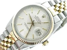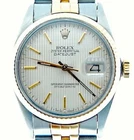 SKU: 6664899MDMT BeckerTime is proud to offer this super nice Men's 36mm Rolex 2Tone 18k Yellow Gold & Stainless Steel Datejust Watch ref #16013 with a Silver Tapestry Dial. And it get's better...This Rolex is the desired QUICKSET MODEL and has a Rolex Jubilee band. This Rolex is in SUPER EXCELLENT CONDITION. Specifications Brand Rolex Model Name Datejust Model No. 16013 Gender Men's Case Diameter 36mm Box No Papers No Condition Preowned - Super Excellent Condition (See Condition Grading Scale below) Warranty Yes - BeckerTime 1 Year Warranty Lifetime Trade-Up Guarantee This Rolex comes with the BeckerTime Lifetime Trade-Up Guarantee Watch Features Movement Rolex officially certified chronometer self-winding automatic movement with QUICKSET DATE function Dial Rolex SILVER TAPESTRY dial with raised yellow gold stick markers Bezel Rolex solid 18k yellow gold FLUTED bezel Crystal Aftermarket Acrylic Crystal Case Rolex stainless steel case Band Rolex 2tone 18k yellow gold and stainless steel Jubilee bracelet with Rolex signed clasp Max Wrist Size 7 1/2" wrist Additional Links Available for an additional cost. Link adds 1/4" AS WITH ALL OF OUR WATCHES, AUTHENTICITY IS GUARANTEED! THIS IS A FILE PHOTO. Terms & Conditions Shipping Terms Processing Time All items are shipped from our facility four (4) business days from the date payment is received. Please be patient as this processing time is necessary because to prepare each shipment with the very best care. *All packages $100 or more in value will require and adult signature for delivery! International Buyers ** Most Countries charge custom duties and taxes on items being imported from the USA ** The Buyer pays ALL import duties, taxes, and fees… These charges are your responsibility. Packages must clear customs and this will take a few days. Most countries charge customs duties, taxes, and fees on items being imported from the USA. You are responsible to know your Country’s importing laws and taxes. Import duties, taxes, and fees are NOT included in the item price or shipping charges. Please check with your country’s customs office to determine what these additional costs will be prior to buying. Duties, taxes, and fees are normally collected by the delivering freight (shipping) company or when you pick the item up & do NOT confuse them for additional shipping charges. We declare all items as a “purchase” for the purchase price amount. We do NOT mark merchandise below value or mark items as “gifts” or “repairs” – USA and International government regulations prohibit such behavior. We cannot risk our ability to do business by falsifying any portion of the customs documents. Please do not ask us to break the law. Lifetime Trade-Up Program If you ever want to upgrade to a newer model, a different model, or a different style; you can trade-in your qualified BeckerTime preowned Rolex and receive the amount you paid for the watch (price you paid for the timepiece only) towards your new purchase. Most of our preowned Rolex watches are eligible for the BeckerTime Lifetime Trade-up Guarantee. Please check the ebay listing to see if the Rolex qualifies. For qualified listings, we will say if it comes with the BeckerTime Lifetime Trade-Up Guarantee. We do not provide credit for any additional links, bezels, band, crystal or dial upgrades. We do not provide a credit for any shipping, taxes, service or repair costs. The price of the new purchase must be at least 25% greater than the cost of your trade-in timepiece. The watch must be returned without any damage or modifications. If the watch has been damaged or modified, the amount of the trade-up value may be less than what you paid. The Lifetime Trade-up Guarantee is not a buy-back program, it is a trade-up program. It applies only to qualified preowned Rolex timepieces that were purchased from Beckertime. Watches not purchased from Beckertime are not applicable to the Lifetime Trade-Up Guarantee. Lifetime Trade-Up Guarantee is non-transferable. Return Policy If it does not put a lump in your throat, you can send it back for a full refund. No Hassles, No Questions, No Reasons Needed. Just email us and return it so we receive it back within 30 days. We are not like other dealers where you must wait months to see the credit or refund. We process all of our returns each weekend and your PayPal account will be credited no later than 3 business days of that weekend. Also, unlike most retailers, we will not deduct a restocking fee. We will refund 100% of the winning bid amount. The Risk is our NOT yours! Disclaimers Authenticity – AUTHENTICITY IS GUARANTEED! Every watch has been thoroughly examined and authenticated by our certified master-watchmaker. All watches are checked for authenticity, mechanical, and aesthetic condition and to make sure it is not stolen. — Read more . Warranty – This warranty applies to the movement of the watch only. Watch movements are warrantied to perform as described in the BeckerTime item description during the warranty period. This warranty does not include the battery, strap, links, clasp, springbars, case, crown, bezel, dial, hands, screws, crystal and/or diamonds. Damage to a watch due to accident, neglect or mistreatment is not covered by this warranty. Also not included is the loss or theft of the watch or any damage done by loss or theft. Damage caused by fire, pressure, water, or natural disaster is not covered. This warranty does not cover any water damage—including, but not limited to crystal fogginess, movement damage, dial or bezel damage, seals, gaskets, liquid penetration and any issues pertaining to water. Repairs, alterations, tampering, substitution and/or addition of parts, custom work and/or modification of any kind done without prior written consent from BeckerTime and not performed by BeckerTime will void this warranty. This warranty replaces the original manufacturers warranty. This warranty is non-transferable. Water Resistance 