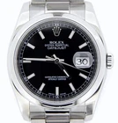 Mon-Thurs: 8:30 am – 5:30 pm (CST) Friday 8:30 am - 2:30 pm (CST) 30 Days Return Policy 1 Year Warranty Rolex Datejust Mens Stainless Steel Watch Black Dial New Style Oyster Band 116200 BeckerTime is proud to offer this super nice Men's 36mm Rolex Stainless Steel Datejust Watch ref #116200 with a Black Dial. And it get's better...This is the more recent & heavier Datejust that is sought after! This Rolex is from the 2000's and is in SUPER EXCELLENT CONDITION . SKU: M202537NMT 1 Year Warranty Specifications Brand Rolex Model Name Datejust Model No. 116200 Gender Men's Case Diameter 36mm Box No Papers No Condition Preowned - Super Excellent Condition (See Condition Grading Scale below) Warranty Yes - BeckerTime 1 Year Warranty Lifetime Trade-Up Guarantee This Rolex does NOT come with the BeckerTime Lifetime Trade-Up Guarantee Watch Features Movement Rolex officially certified chronometer self-winding automatic movement with QUICKSET Date function Dial Rolex BLACK dial with raised stick markers Bezel Rolex stainless steel smooth finish DOMED bezel Crystal Aftermarket Sapphire Crystal Case Rolex stainless steel case Band Rolex stainless steel Oyster bracelet with Rolex signed clasp. This is the heavier and more recent version Rolex oyster band! Max Wrist Size 7 1/2" wrist Additional Links Available for an additional cost. Link adds 1/3" AS WITH ALL OF OUR WATCHES, AUTHENTICITY IS GUARANTEED! THIS IS A FILE PHOTO. On This Item On All Items Condition Grading Scale Brand New 10 New. Perfect condition and never worn. The watch has the original manufactures protective plastic (if applicable). It may or may not come with original box or papers. It is working properly, keeping very good time. Super Excellent Condition 8.5 to 9.5 Super nice. Light signs of wear. Watches with the original band will have moderate to minimal stretch between the links. The watch is working properly, keeping good time. Never Worn 9.8 to 9.9 New. Perfect condition and never worn. The watch has the original manufactures protective plastic (if applicable). It may or may not come with original box or papers. It is working properly, keeping very good time. Excellent Condition 7.0 to 8.5 Nice. Signs of wear. Depending on the age of the timepiece, watches with the original band will have loose or moderate stretch and wear between the links. The watch is working properly, keeping good time, but may gain or lose up to 30 seconds over 24 hours. Super Mint Condition 9.7 to 9.8 Perfect. Looks never worn. As close to new as you can get for a preowned watch. This is the equivalent of a new watch that does not have the original manufactures protective plastic (if applicable). If you remove the protective plastic from a brand new watch, and have not yet worn the watch, it is now in Super Mint Condition. It may or may not come with original box or papers. It is working properly, keeping very good time. Fair Condition 5.0 to 7.0 Fair. Signs of heavy wear. Watch may have a few dings, nicks, or deep scratches The band has severe stretch between the links. The watch is working, but may gain or lose a few minutes over 24 hours. Mint Condition 9.5 to 9.7 Near perfect. Looks like new on the wrist. Signs of wear are only visible with a loupe. The band has no stretch or wear. The watch is working properly, keeping very good time. Poor Condition Less than 5 Poor. Signs of extreme heavy wear, damage, or abuse. Major cosmetic and/or mechanical flaws that directly affect the integrity of the watch. The watch may be missing parts and/or may not run at all. We do not recommend this watch to be worn in this condition. Requires a lot of work to be made wearable. Brand New 10 New. Perfect condition and never worn. The watch has the original manufactures protective plastic (if applicable). It may or may not come with original box or papers. It is working properly, keeping very good time. Never Worn 9.8 to 9.9 New. Perfect condition and never worn. The watch has the original manufactures protective plastic (if applicable). It may or may not come with original box or papers. It is working properly, keeping very good time. Super Mint Condition 9.7 to 9.8 Perfect. Looks never worn. As close to new as you can get for a preowned watch. This is the equivalent of a new watch that does not have the original manufactures protective plastic (if applicable). If you remove the protective plastic from a brand new watch, and have not yet worn the watch, it is now in Super Mint Condition. It may or may not come with original box or papers. It is working properly, keeping very good time. Mint Condition 9.5 to 9.7 Near perfect. Looks like new on the wrist. Signs of wear are only visible with a loupe. The band has no stretch or wear. The watch is working properly, keeping very good time. Super Excellent Condition 8.5 to 9.5 Super nice. Light signs of wear. Watches with the original band will have moderate to minimal stretch between the links. The watch is working properly, keeping good time. Excellent Condition 7.0 to 8.5 Nice. Signs of wear. Depending on the age of the timepiece, watches with the original band will have loose or moderate stretch and wear between the links. The watch is working properly, keeping good time, but may gain or lose up to 30 seconds over 24 hours. Fair Condition 5.0 to 7.0 Fair. Signs of heavy wear. Watch may have a few dings, nicks, or deep scratches The band has severe stretch between the links. The watch is working, but may gain or lose a few minutes over 24 hours. Poor Condition Less than 5 Poor. Signs of extreme heavy wear, damage, or abuse. Major cosmetic and/or mechanical flaws that directly affect the integrity of the watch. The watch may be missing parts and/or may not run at all. We do not recommend this watch to be worn in this condition. Requires a lot of work to be made wearable. Why Buy From BeckerTime About Us BeckerTime began in 1998 as the passion of father-son watch enthusiasts. We began selling on eBay in January 1999. We are 