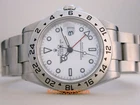 ROLEX EXPLORER II STAINLESS STEEL 16570 Stainless Steel, Automatic, Date, Superlative Chronometer Officially Certified. Two-time Zone White Dial with Luminous Index and Hour Markers. Ref.16570-0003 Size: 40.0 mm Thick: 11.0 mm A Series Made Circa 1999 and Sold in 2000. Sapphire Crystal with Cyclops Lens. Screw Down Crown Stainless Steel Oyster Bracelet with Folding Flip lock Clasp Water-resistance to 100 m/330 ft. Condition 9.5 out of 10 Comes with Rolex Box & Papers. Please contact me if you have any questions. Note: ALL PICTURES ARE OF THE ACTUAL WATCH.