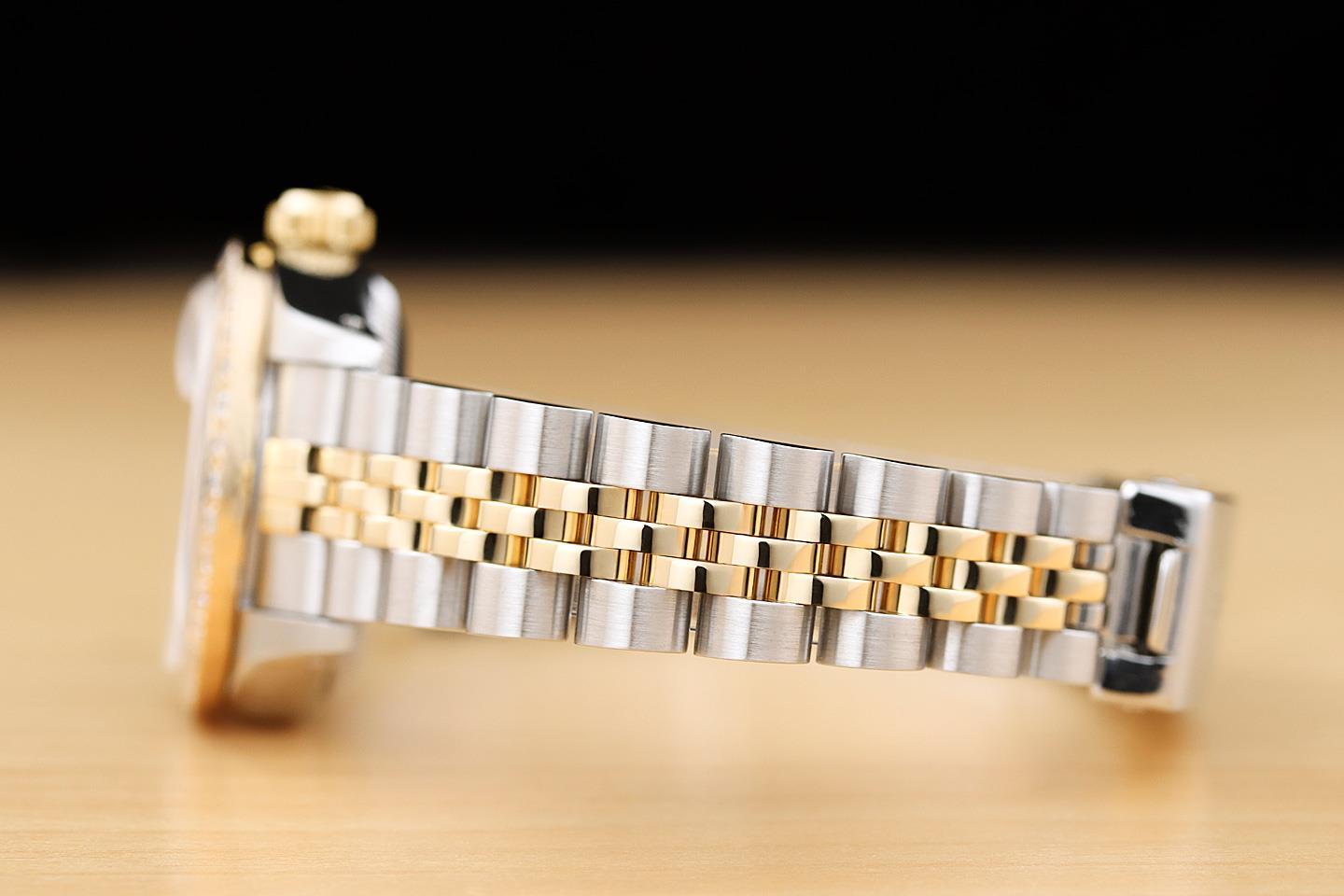ROLEX LADIES DATEJUST 69173 18K GOLD STEEL TWO TONE BLUE FACTORY DIAMOND WATCH This is an authentic Rolex watch with an original Rolex 18K yellow gold and stainless steel jubilee bracelet, factory Rolex diamond dial, and custom 18K yellow gold diamond bezel. This genuine pre-owned timepiece is in great condition and keeps accurate time. This timepiece has been serviced, polished, and tested prior to sale. It comes with an one year warranty and 30 DAY NO HASSLE RETURN GUARANTEE. Descriptions: Brand: Rolex Model: Datejust Reference: 69173 Gender: Women's Case Diameter: 26mm Features: Dial: Factory Rolex Diamond Dial Bezel: Custom 18K Yellow Gold Diamond Bezel Crystal: Sapphire Crystal Case: Rolex Stainless Steel Case Movement: Rolex Certified Chronometer Self-Winding Automatic Quickset 2135 Movement Bracelet: Rolex 18K Yellow Gold and Stainless Steel Jubilee Bracelet Wrist Size: Rolex Clasp Fits Wrist up to 6.5 in. (Additional links to increase length can be purchased) Box: Watch Box Paper: None VIEW OUR WATCH COLLECTION Payment Method • All major debit, credit, and gift cards accepted including: Apple Pay, Google Pay, PayPal and PayPal Credit • The item can only be shipped to the eBay confirmed address and this precaution is taken to protect both the seller and buyer. It will also ensure that your order be processed in a timely manner. • If it is a high ticket purchase, your payment may be reviewed by eBay. Shipping Policies • All orders will be shipped via USPS including a tracking number. • Signature confirmation will be mandatory for items above $250. • Shipments will only be made on business days and none on weekends or national holidays. • Buyers are responsible for all duties and taxes. • The purchase price does not include import duties, taxes, and/or charges for international shipments. Return Policies • All purchases come with a 30 days complete satisfaction guarantee. There are no restocking fees and you will receive a 100% refund upon returning the item in the same condition. • All domestic return shipping is free as long as you follow our EXACT "Return Instructions." • To return an item, select "Return this Item," and then select "Changed My Mind." • Refunds will be processed within 2-3 business days upon receipt of the returned item. Terms and Conditions • All watches are genuine and have been verified by our master watch specialists. • It is important to check the product descriptions and specifications prior to purchase. © Copyright 2012-2021 Purewatches. All rights reserved. Images sell! Get Supersized Images & Free Image Hosting Create your brand with Auctiva's Customizable Templates. Attention Sellers - Get Templates Image Hosting, Scheduling at Auctiva.com.