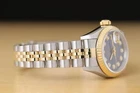 ROLEX LADIES DATEJUST 79173 BLUE DIAMOND DIAL 18K YELLOW GOLD STEEL WATCH This is an authentic Rolex Datejust 79173 no holes watch with an original Rolex 18K yellow gold and stainless steel jubilee bracelet, Rolex dial with added diamond markers, and Rolex 18K yellow gold fluted bezel. This genuine pre-owned timepiece is in great condition and keeps accurate time. This timepiece has been serviced, polished, and tested prior to sale. It comes with an one year warranty and 30 DAY NO HASSLE RETURN GUARANTEE. Descriptions: Brand: Rolex Model: Datejust Reference: 79173 Gender: Women's Case Diameter: 26mm Features: Dial: Rolex Dial w/ Added Diamond Markers Bezel: Rolex 18K Yellow Gold Fluted Bezel Crystal: Sapphire Crystal Case: Rolex Stainless Steel Case Movement: Rolex Certified Chronometer Self-Winding Automatic Quickset 2235 Movement Bracelet: Rolex 18K Yellow Gold and Stainless Steel Jubilee Bracelet Wrist Size: Rolex Clasp Fits Wrist up to 6.5 in. (Additional links to increase length can be purchased) Box: Wooden Box Paper: None VIEW OUR WATCH COLLECTION Payment Method • All major debit, credit, and gift cards accepted including: Apple Pay, Google Pay, PayPal and PayPal Credit • The item can only be shipped to the eBay confirmed address and this precaution is taken to protect both the seller and buyer. It will also ensure that your order be processed in a timely manner. • If it is a high ticket purchase, your payment may be reviewed by eBay. Shipping Policies • All orders will be shipped via USPS including a tracking number. • Signature confirmation will be mandatory for items above $250. • Shipments will only be made on business days and none on weekends or national holidays. • Buyers are responsible for all duties and taxes. • The purchase price does not include import duties, taxes, and/or charges for international shipments. Return Policies • All purchases come with a 30 days complete satisfaction guarantee. There are no restocking fees and you will receive a 100% refund upon returning the item in the same condition. • All domestic return shipping is free as long as you follow our EXACT "Return Instructions." • To return an item, select "Return this Item," and then select "Changed My Mind." • Refunds will be processed within 2-3 business days upon receipt of the returned item. Terms and Conditions • All watches are genuine and have been verified by our master watch specialists. • It is important to check the product descriptions and specifications prior to purchase. © Copyright 2012-2021 Purewatches. All rights reserved. Images sell! Get Supersized Images & Free Image Hosting Create your brand with Auctiva's Customizable Templates. The complete eBay Selling Solution.
