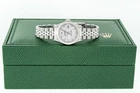 Elevate your style with the ROLEX Ladies Datejust, featuring a stunning silver diamond dial and 18K white gold fluted bezel. This 26mm stainless steel beauty combines luxury and precision with its self-winding movement. Enjoy the comfort of a Jubilee bracelet and receive a luxurious watch box, 3-year warranty, and certificate of authenticity. Perfect for any occasion! View all items Rolex Steel Ladies Watches · Rolex 2Tone Ladies Watches · Rolex Sport Watches · Rolex Ladies YG Presidents · Rolex Mens YG Presidents · Rolex Steel Mens Watches · Rolex 2Tone Mens Watches ROLEX LADIES DATEJUST STAINLESS STEEL - SILVER DIAMOND DIAL AND FLUTED WATCH Elevate your style with the ROLEX Ladies Datejust, featuring a stunning silver diamond dial and 18K white gold fluted bezel. This 26mm stainless steel beauty combines luxury and precision with its self-winding movement. Enjoy the comfort of a Jubilee bracelet and receive a luxurious watch box, 3-year warranty, and certificate of authenticity. Perfect for any occasion! WATCH INFORMATION DIAL (FACE) Custom Silver Dial Set With Added Round (VVS H Color) Diamond Markers. BEZEL (RING AROUND THE FACE) Rolex 18K White Gold Fixed Fluted Bezel. CASE (Body Of Watch) Genuine Rolex Stainless Steel Case with Stainless Steel Rolex Screw Down Crown. Rolex Datejust 26mm Ladies case. BAND (Bracelet) Genuine Rolex Stainless Steel Jubilee Bracelet with Genuine Rolex Stainless Steel Folding Clasp. The Bracelet Length is currently 6.0 inches. Additional links available for purchase. Each additional link will add 1/4 inch. MOVEMENT Rolex Automatic Movement Self-Winding Movement. ADDITIONS Luxurious Watch Box, 3 Year Warranty and Certificate of Authenticity Provided from our Company. Product Specs Bezel Color: Silver Max Wrist Size: 5.76-6 in (146.3-152.4 mm) Closure: Buckle Number of Jewels: 28 Jewels Indices: Diamond Markers Case Thickness: 10 mm Band/Strap: Rolex Jubilee Case Color: Silver Department: Women Caseback: Screwback Lug Width: 13 mm Bezel Type: Fluted Shipping About Us Payment DOMESTIC ORDERS In stock items will be shipped 1-3 days after payment has been confirmed. Free Domestic Shipping. We ship with FedEx and DHL Express only. We can only ship Adult Signature Required. In stock items will usually be delivered 3-5 days after payment has been confirmed. Special requests must be made at the time of the purchase or no later than 48 hours after. We can only ship to address listed on the order. INTERNATIONAL ORDERS We use DHL Express and FedEx International priority for all international orders. All shipments are fully insured. Customers are responsible for Import/Export custom charges even if package is denied. Due to custom regulations, we are in no way responsible for custom fees. We believe integrity towards our customers and our work is a way of life. We understand every watch is important and meaningful, which translates to our best practices towards every piece which leaves our hands. Customer satisfaction and happiness is our main priority; therefore, we strive to be as detail oriented as possible to precisely serve our customers. We consider ourselves connoisseurs of luxury items as we customize every watch to add a little je ne sais quoi to your everyday timepiece. We have a long-standing relationship with our watchmakers which contributes to the immense wealth of knowledge and level of specificity this craft demands. Consequently, our customers receive high-quality items which will bring a smile to their face every time they wear our beautiful accessories. Every order we take on is not another job, instead a passion project. RETURN POLICY 14 days return policy on all orders. Watches must be in the same exact condition as it was received. The return process is hassle-free We will provide a Free return label which is fully insured You'll also enjoy a 5% discount for any watch you'd choose to buy from us WARRANTY All of our preowned watches come with a limited warranty that covers all mechanical parts starting from the date of the purchase. We inspect every single watch from buckle to buckle after service and polish so we can make sure your watch is in excellent condition, and fully functional throughout the warranty period. We hope you will love your purchase, however if you need to return it, we have a 60 day return policy. We hope you will love your purchase, however if you need to return it, we have a 60 day return policy. We hope you will love your purchase, however if you need to return it, we have a 60 day return policy. We hope you will love your purchase, however if you need to return it, we have a 60 day return policy. We hope you will love your purchase, however if you need to return it, we have a 60 day return policy. Featured Products ROLEX LADIES DATEJUST STAINLESS STEEL - RED STRING DIAMOND DIAL AND BEZEL WATCH $7,325.00 ROLEX LADIES DATEJUST 26MM STAINLESS STEEL - GREEN DIAMOND DIAL AND BEZEL WATCH $7,325.00 ROLEX LADIES DATEJUST STAINLESS STEEL - WHITE DIAMOND DIAL AND BEZEL WATCH $7,325.00 ROLEX LADIES DATEJUST STEEL - 18K GOLD BLUE DIAMOND DIAL - SAPPHIRE BEZEL WATCH $7,225.00 ROLEX LADIES DATEJUST STAINLESS STEEL - WHITE DIAMOND DIAL AND BEZEL WATCH $7,225.00 ROLEX LADIES DATEJUST STAINLESS STEEL WITH SILVER DIAMOND DIAL AND BEZEL WATCH $7,025.00 ROLEX LADIES DATEJUST STAINLESS STEEL WITH PINK MOP DIAMOND DIAL AND BEZEL WATCH $7,325.00 ROLEX LADIES DATEJUST STAINLESS STEEL PINK DIAMOND DIAL - DIAMOND BEZEL WATCH $7,500.00 We are an independent business that sells preowned watches and is not affiliated with Rolex, USA or any other watch brand it sells. Rolex and the other brands are under no obligation to service and warranty watches sold by 3rd party dealers like our company. The following Rolex models are all registered trademarks of the Rolex Corporation (Rolex USA, Rolex S.A.): Rolex Datejust, Rolex Day Date President, Submariner, Presidential, Explorer, Sea Dweller, Super President, GMT Master, GMT, Yacht Master, Prince, Mil