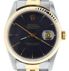 SKU: S480823NBCMT BeckerTime is proud to offer this handsome Men's 36mm Rolex 2Tone 18K Yellow Gold & Stainless Steel Datejust Watch ref #16233 with a Black Tapestry Dial. And it get's better...This is the desired QUICKSET MODEL with the SAPPHIRE CRYSTAL and a Rolex Jubilee band. This Rolex is in EXCELLENT CONDITION . Specifications Brand Rolex Model Name Datejust Model No. 16233 Gender Men's Case Diameter 36mm Box No Papers No Condition Preowned - Excellent Condition (See Condition Grading Scale below) Warranty Yes - BeckerTime 1 Year Warranty Lifetime Trade-Up Guarantee This Rolex comes with the BeckerTime Lifetime Trade-Up Guarantee Watch Features Movement Rolex officially certified chronometer self-winding automatic movement with QUICKSET DATE function Dial Rolex BLACK TAPESTRY dial with raised yellow gold stick markers Bezel Rolex solid 18k yellow gold FLUTED bezel Crystal Aftermarket Sapphire Crystal Case Rolex stainless steel case Band Rolex 2tone 18k yellow gold and stainless steel Jubilee bracelet with Rolex signed clasp. Moderate stretch/wear. Max Wrist Size 7 1/2" wrist Additional Links Available for an additional cost. Link adds 1/4" AS WITH ALL OF OUR WATCHES, AUTHENTICITY IS GUARANTEED! THIS IS A FILE PHOTO. Terms & Conditions Shipping Terms Processing Time All items are shipped from our facility four (4) business days from the date payment is received. Please be patient as this processing time is necessary because to prepare each shipment with the very best care. *All packages $100 or more in value will require and adult signature for delivery! International Buyers ** Most Countries charge custom duties and taxes on items being imported from the USA ** The Buyer pays ALL import duties, taxes, and fees… These charges are your responsibility. Packages must clear customs and this will take a few days. Most countries charge customs duties, taxes, and fees on items being imported from the USA. You are responsible to know your Country’s importing laws and taxes. Import duties, taxes, and fees are NOT included in the item price or shipping charges. Please check with your country’s customs office to determine what these additional costs will be prior to buying. Duties, taxes, and fees are normally collected by the delivering freight (shipping) company or when you pick the item up & do NOT confuse them for additional shipping charges. We declare all items as a “purchase” for the purchase price amount. We do NOT mark merchandise below value or mark items as “gifts” or “repairs” – USA and International government regulations prohibit such behavior. We cannot risk our ability to do business by falsifying any portion of the customs documents. Please do not ask us to break the law. Lifetime Trade-Up Program If you ever want to upgrade to a newer model, a different model, or a different style; you can trade-in your qualified BeckerTime preowned Rolex and receive the amount you paid for the watch (price you paid for the timepiece only) towards your new purchase. Most of our preowned Rolex watches are eligible for the BeckerTime Lifetime Trade-up Guarantee. Please check the ebay listing to see if the Rolex qualifies. For qualified listings, we will say if it comes with the BeckerTime Lifetime Trade-Up Guarantee. We do not provide credit for any additional links, bezels, band, crystal or dial upgrades. We do not provide a credit for any shipping, taxes, service or repair costs. The price of the new purchase must be at least 25% greater than the cost of your trade-in timepiece. The watch must be returned without any damage or modifications. If the watch has been damaged or modified, the amount of the trade-up value may be less than what you paid. The Lifetime Trade-up Guarantee is not a buy-back program, it is a trade-up program. It applies only to qualified preowned Rolex timepieces that were purchased from Beckertime. Watches not purchased from Beckertime are not applicable to the Lifetime Trade-Up Guarantee. Lifetime Trade-Up Guarantee is non-transferable. Return Policy If it does not put a lump in your throat, you can send it back for a full refund. No Hassles, No Questions, No Reasons Needed. Just email us and return it so we receive it back within 30 days. We are not like other dealers where you must wait months to see the credit or refund. We process all of our returns each weekend and your PayPal account will be credited no later than 3 business days of that weekend. Also, unlike most retailers, we will not deduct a restocking fee. We will refund 100% of the winning bid amount. The Risk is our NOT yours! Disclaimers Authenticity – AUTHENTICITY IS GUARANTEED! Every watch has been thoroughly examined and authenticated by our certified master-watchmaker. All watches are checked for authenticity, mechanical, and aesthetic condition and to make sure it is not stolen. — Read more . Warranty – This warranty applies to the movement of the watch only. Watch movements are warrantied to perform as described in the BeckerTime item description during the warranty period. This warranty does not include the battery, strap, links, clasp, springbars, case, crown, bezel, dial, hands, screws, crystal and/or diamonds. Damage to a watch due to accident, neglect or mistreatment is not covered by this warranty. Also not included is the loss or theft of the watch or any damage done by loss or theft. Damage caused by fire, pressure, water, or natural disaster is not covered. This warranty does not cover any water damage—including, but not limited to crystal fogginess, movement damage, dial or bezel damage, seals, gaskets, liquid penetration and any issues pertaining to water. Repairs, alterations, tampering, substitution and/or addition of parts, custom work and/or modification of any kind done without prior written consent from BeckerTime and not performed by BeckerTime will void this warranty. This warranty replaces the original manufacturers warranty. This warranty is non-trans