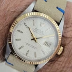 Iconic classic, Men's 18k gold and stainless steel Rolex Oyster Perpetual Datejust Ref.16013 automatic computer dial, c.1987, in excellent working condition. Verified authentic by a master watchmaker. Gorgeous Rolex signed computer dial, applied lumed stick index hour markers, gilt minute and hour hands, sweeping central second hand, date display at the 3 position, hands and dial in excellent, vintage condition, very minor show of age on hands and dial if any. Acrylic crystal. 18k solid gold fluted bezel on stainless steel case measures 36mm wide, in excellent condition. Gold Rolex crown. 27-jeweled Rolex cal.3035 COSC automatic movement, quickset date feature, cleaned and serviced, in excellent running condition. Watch is all original. Fitted on new, aftermarket suede leather strap and buckle. A unique timeless classic, Men's 18k gold & stainless steel Rolex Oyster Datejust computer dial automatic, uncompromising luxury for your bold lifestyle, the perfect complimentary piece for your ensemble, perfect for every occasion. THE FINEST AND MOST VARIED SELECTION OF VINTAGE WATCHES IN THE WORLD CLASSIC PRE-OWNED COLLECTIBLE TIMEPIECES FROM BEVERLY HILLS, CALIFORNIA, USA Watch Description BRAND : Rolex MODEL : Oyster Perpetual Datejust, Ref.16013 COUNTRY OF MANUFACTURE : Switzerland YEAR OF MANUFACTURE : 1987 MOVEMENT : Automatic, cal.3035 quickset CASE MATERIAL : 18k Gold & Stainless steel CASE MEASUREMENT EXCLUDING CROWN : 36mm CRYSTAL : Acrylic BAND TYPE : Leather BAND LENGTH : 21cm including the watch GENDER : Men's Watch CONDITION : Pre-owned 100% AUTHENTIC PRODUCTS AND BRANDS All of our vintage pre - owned watches we offer here are authentic watches that have been cleaned, polished and serviced to perfection by our master watch technicians. Each of these items has been verified to be an original vintage of its brand. All of our items are in immaculate condition, a classic watch to be loved and passed down. Our team has sold thousands of timepieces worldwide. Buy with confidence. Important Notice For Our Premium Vintage Classic Timepieces Buyers, please note that this collectable and rare item offered in our listing is a pre-owned vintage classic mechanical item that may not function like a brand-new item, or may have other unexpected issues due to its age. No box or papers unless otherwise noted. A signed certificate of authenticity is available for an additional $25. Note: This is a special collectable timepiece. Please contact us before ordering so that we can confirm availability. Items are subject to prior sale. If you experience any issues with the item, we ask you to please contact us immediately through the message system or by phone, and we will do our utmost to correct the issue and make sure that your concerns are handled properly and resolved. OUR TEAM IS STANDING BY TO ASSIST YOU We have been in business for over 30 years and we stand behind our 100% customer satisfaction guaranty. Our customers are always our top priority and we strive for 5-star customer service and positive ratings while delivering a great buying experience. IF YOU HAVE ANY QUESTIONS OR CONCERNS, PLEASE CONTACT thanks PAYMENTS We accept all payments at checkout. Note: For orders above $10,000 please contact us and we will send you the instructions. Payment must be made within 3 days after the auction ends. SHIPPING Shipping and Handling ? Items shipped with insurance and signature required. Item location: Beverly Hills, California, United States Shipping to: Worldwide, Excludes: Africa, Russia FREE STANDARD SHIPPING AND INSURANCE IN USA Free Standard USA Shipping, $ 9.99 Expedited Shipping, $29.99 Express Overnight Shipping, $69.99 International Shipping. DUTIES AND TAXES California residents add 9.75% sales tax. International customers are responsible for any duties/taxes levied by their countries. RETURNS IF YOU ARE NOT 100% SATISFIED FOR ANY REASON YOU CAN RETURN THE ITEM FOR A FULL REFUND. YOUR SATISFACTION IS OUR TOP PRIORITY. 30 DAYS - RETURN PERIOD - must be returned in unworn condition with original packaging and paperwork. WARRANTY We offer a full 90 day warranty on all vintage timepieces. Warranty covers parts and service. Water damage or accidental damage is not covered. PLEASE NOTE This item is a pre-owned timepiece that was acquired from legitimate sources. Our master watchmakers have inspected and confirmed the authenticity of this item. Unless stated otherwise, our items are expertly polished, restored, serviced and made to look its best. We are sure you will be happy with this lovely timepiece. Thank you for your business!