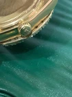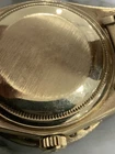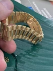 The Rolex Presidential Day Date 18038 is a stunning vintage wristwatch featuring a gold diamond bezel, 27 jewels, Roman numeral and stick indexes on the dial, and a matching 18kt band. This luxurious timepiece was manufactured in the 1980s in Switzerland and has a classic round case with a 38mm size. The watch is unisex and boasts a mechanical (automatic) movement, making it a sophisticated and timeless accessory for any occasion. Aftermarket Diamond Bezel minimum 6.40 carats Case # 6585188 Movement 3055 27 jewels 5 positions Watch works with genuine Rolex Box No paperwork 18kt everything except movement Band is 18kt (tested) and guaranteed. Its marked Italy 750. Not marked anywhere Rolex with the exception on the clasp Logo