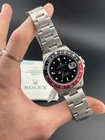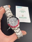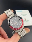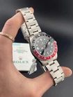 The Rolex GMT-Master II Reference 16710, manufactured in 1997, is a timepiece that seamlessly blends functionality and iconic design. This 40mm watch features a classic black dial, combining versatility with a touch of sophistication. In impeccable working condition and accompanied by its original box and papers, this Rolex GMT-Master II is a collector's dream. We are proud to offer 2 years of warranty with all of our purchases. Please feel free to reach out if you have any questions! The black dial of the Rolex GMT-Master II 16710 provides a sleek backdrop for the luminescent hour markers and hands, ensuring optimal legibility in any lighting condition. The 40mm stainless steel case and iconic red and blue "Pepsi" bezel exemplify Rolex's commitment to durability and distinctive design. The GMT function, with the additional 24-hour hand, makes this timepiece ideal for globetrotters. Powered by a reliable automatic movement, this Rolex GMT-Master II from 1997 stands as a timeless representation of Rolex's horological expertise. Condition: Case: 10/10 Flawless Bezel: 9/10 Has slight mark between 13:00/14:00 Bracelet:: 9/10 Very good, no scratches, barely any stretch Clasp: 10/10 Flawless Dial: 10/10 Flawless Hands: 10/10 Flawless Crystal: 10/10 Flawless