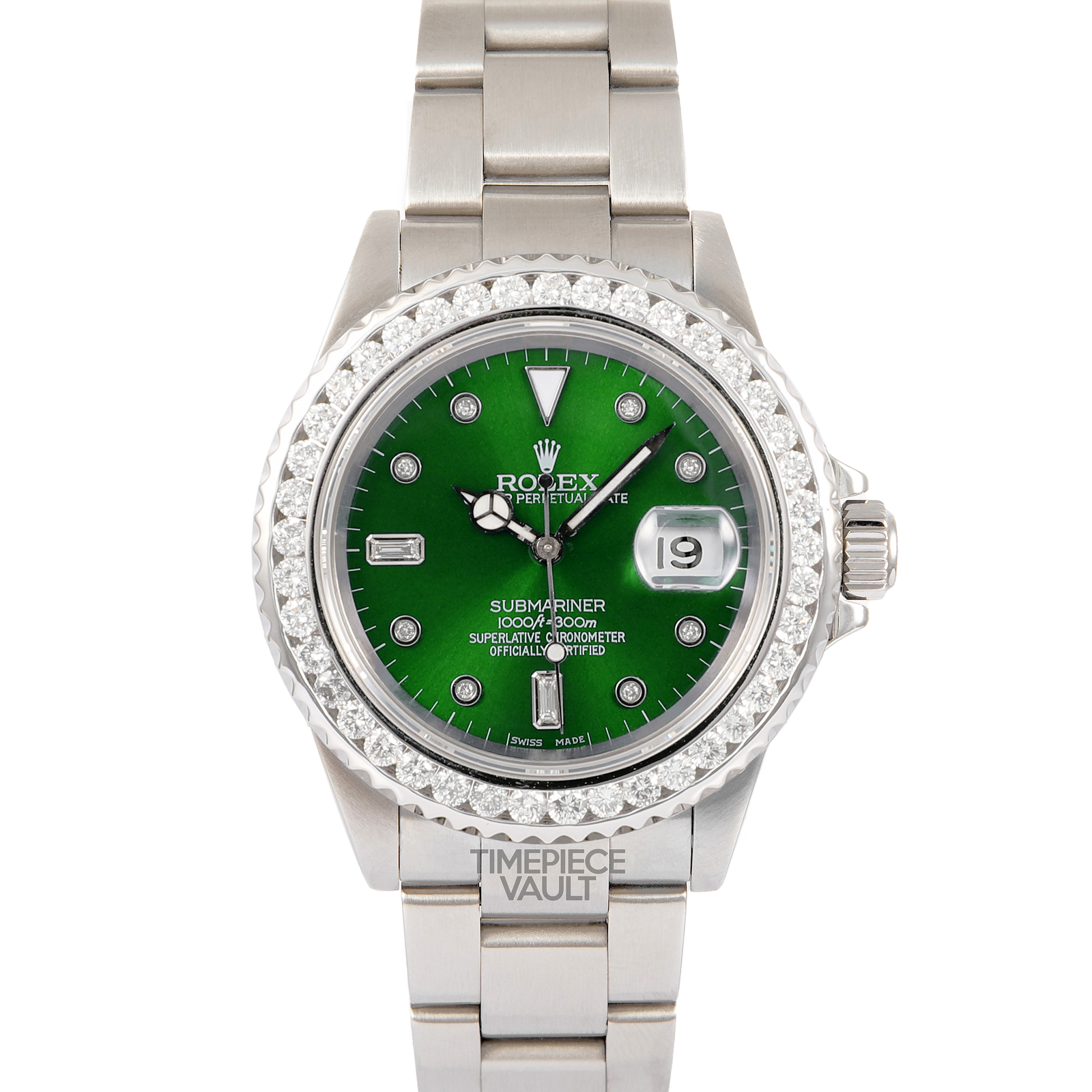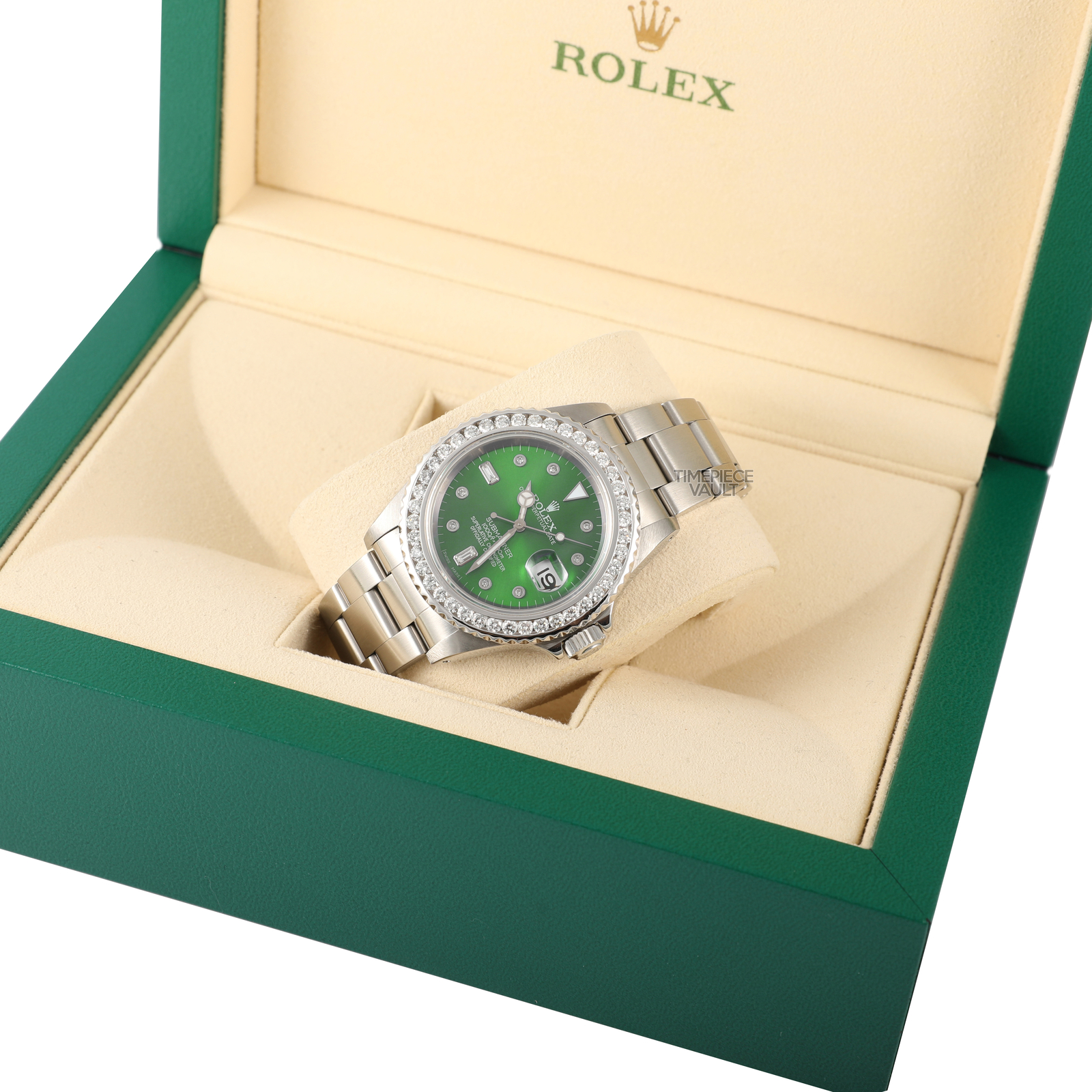 Powered by Frooition Visit the Time Piece Vault eBay Store to View All Items About Us Feedback Contact Us GMT-Master II Other Submariner Day-Date Datejust ROLEX MEN SUBMARINER 16610 DATE STEEL 40MM GREEN DIAMOND DIAL 3CT DIAMOND BEZEL ROLEX MEN SUBMARINER 16610 DATE STEEL 40MM GREEN DIAMOND DIAL 3CT DIAMOND BEZEL Item Description Introducing the Rolex Submariner Reference 16610. This sporty and elegant timepiece is designed for men and features a 40mm stainless steel case with a screwback. The watch has a Custom Green dial with Diamond Hour Markers. It also features a gorgeous custom natural 3CT Diamond Bezel. The bracelet is stainless steel, it has an easy-to-use Oyster Perpetual bracelet and a secure steel folding clasp with Flip Lock. This watch has undergone recent servicing and polishing, making the watch look like brand new and ensuring it's in top-notch condition. The sale includes a Rolex box, booklets, and tag. We also includes a two-year warranty and a certificate of authenticity from our company. Specs : Brand: Rolex Country of Manufacture: Switzerland Model: Submariner Reference: 16610 Condition: Pre-Owned Box: YES Paper: No Year: 1990-1999 Style: Sport Gender: MEN Case & Dial Case Size: 40mm Case Material: Stainless Steel Case back: Screw back Dial: Custom Non-Rolex Green Dial with Diamond Hour Markers Bezel: Custom Non-Rolex Natural 3CT Diamond Bezel-VS2/SI1 G-H Strap/ Bracelet Material: Stainless Steel Band Color: Silver Bracelet Type: Rolex Oyster Perpetual Buckle Type: Steel folding clasp with flip lock Bracelet Size: 7.5 inches Function Movement: Rolex Automatic Quickset Date Movement Complication: Time, Date About Us About Us Payment Shipping Returns About Us With over 15 years of experience and numerous satisfied customers, we offer the largest selection of Rolex watches for sale, alongside other prestigious brands. We are your ultimate destination to buy, sell, and trade pre-owned Rolex watches for both men and women. Our luxury pre-owned watch store is known for outstanding customer service and competitive pricing. Every item in our listing is available for free overnight shipping. To ensure authenticity, our professional watchmakers carefully verify each watch, so you can have complete confidence in our legitimacy. DISCLAIMER : Timepiece Vault Inc. is an independent business specializing in the sale of pre-owned and brand-new watches. We are not affiliated with Rolex, USA, or any other watch brand we sell. Rolex and other brands are not obligated to honor the warranty or provide service on watches sold by third-party dealers such as Timepiece Vault Inc. All other brands are registered trademarks of their respective owners and are not affiliated with Timepiece Vault Inc. Payment Payment We accept all forms of payment through the eBay payment system. EBay accepts various payment methods including credit cards, debit cards, Apple Pay, Google Pay, Venmo, and PayPal. For detailed information on accepted payment methods, please refer to the Shipping and Payments section of the listing. Shipping Shipping Orders are typically shipped within 2-3 working days from the time the order is placed. Once the order is placed, our watchmakers complete a final inspection before shipping it to the customer. For items undergoing the eBay authentication process: Once you purchase an item eligible for eBay's Authenticity Guarantee, we will expedite the shipment to an eBay Authentication Facility. There, experts will carefully examine its authenticity and verify the listing details. After confirmation, the item will be securely sent to you via 2-day shipping with a required signature. If authenticity cannot be confirmed or the item doesn't match the description, it will be returned to the seller, and you will receive a full refund. For items not undergoing the eBay authentication process: With years of experience, Timepiece Vault ensures the safest and most reliable shipping for high-value items. We package your watch discreetly using multiple layers and send it overnight to minimize transit time. Every step of the journey is fully insured. We provide this level of meticulous care at no additional cost. Please note, the purchase price does not include import duties and taxes. Buyers are responsible for all duties and taxes Returns Returns Timepiece Vault offers a 14-day return window from the date of delivery. Watches must be returned in the exact condition as received, including all original packaging, tags, and accessories. Our return process is designed to be straightforward and customer-friendly. We provide a free return shipping label for your convenience, fully insured for peace of mind. Please note that if any of the following actions are carried out by Timepiece Vault, the return and potential refund will not be possible: Removing the security tag Missing accessories Making modifications Performing alterations Causing damage Resizing Showing signs of "Wear and Tear" If Timepiece Vault accepts a return that has been voided due to these actions, any costs associated with the return will be subtracted from the refund. This includes expenses related to shipping, repairs, services, and replacement parts needed due to the return of the item. More Items! View more great items ROLEX SUBMARINER 16610 DATE S/STEEL 40MM WATCH GREEN MALACHITE DIAL GREEN BEZEL $10,998.00 ROLEX SUBMARINER 16610 STEEL 40MM WATCH 5CT DIAMOND BEZEL WHITE MOP EMERALD DIAL $16,398.00 ROLEX SUBMARINER 16610 STEEL 40MM WHITE MOP SAPPHIRE BAGUETTE DIAL BLUE INSERT $10,998.00 ROLEX SUBMARINER 16610 DATE STEEL 40MM WATCH RED DIAMOND DIAL 3CT DIAMOND BEZEL $14,350.00 Shop Our Categories Men's Women's Two Tone Steel Gold Request Now Contact Us Home View Feedback Contact Seller Visit seller's eBay Shop About Seller Page Powered by Frooition Frooition | No-js Template | eBay design, eBay store design, eBay shop design, eBay template design, eBay listing design (ver:froo_no_js) This listing is currently undergoing maintenance