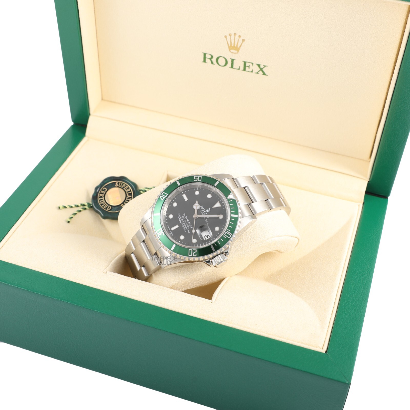 Powered by Frooition Visit the Time Piece Vault eBay Store to View All Items About Us Feedback Contact Us GMT-Master II Other Submariner Day-Date Datejust ROLEX SUBMARINER 16610 REHAUT STEEL OYSTER NO-HOLE 40MM BLACK DIAL GREEN INSERT ROLEX SUBMARINER 16610 REHAUT STEEL OYSTER NO-HOLE 40MM BLACK DIAL GREEN INSERT Item Description Introducing the Rolex Submariner Reference 16610, a fine Swiss watch crafted between 2000-2009 with rehaut engraved. This watch has undergone recent servicing and polishing, making the watch look like brand new and ensuring it's in top-notch condition. This sporty and elegant timepiece is designed for men and features a 40mm stainless steel case with a screw-on back. The watch has a original Black Dial with Luminous Hour Markers. It also features a custom green aluminum insert with a Rolex stainless steel bezel. The bracelet is stainless steel, it has an easy-to-use Oyster Perpetual bracelet and a secure steel folding clasp with Flip Lock. The sale includes a Rolex box, booklets, and tag. We also includes a two-year warranty and a certificate of authenticity from our company. Specs : Brand: Rolex Country of Manufacture: Switzerland Model: Submariner Reference: 16610 Condition: Pre-Owned Box: YES Paper: NO Year: 2000-2009 Style: Sport Gender: MEN Case & Dial Case Size: 40mm No-Hole Case Material: Stainless Steel Case back: Screw back Dial: Rolex Black Dial with Luminous Hour Markers Bezel: Custom Non-Rolex Green Aluminum Insert & Rolex Steel Bezel Strap/ Bracelet Material: Stainless Steel Band Color: Silver Bracelet Type: Rolex Oyster Perpetual Buckle Type: Steel folding clasp with flip lock Bracelet Size: 7.5 inches Function Movement: Rolex Automatic Quickset Date Movement Complication: Time, Date About Us About Us Payment Shipping Returns About Us With over 15 years of experience and numerous satisfied customers, we offer the largest selection of Rolex watches for sale, alongside other prestigious brands. We are your ultimate destination to buy, sell, and trade pre-owned Rolex watches for both men and women. Our luxury pre-owned watch store is known for outstanding customer service and competitive pricing. Every item in our listing is available for free overnight shipping. To ensure authenticity, our professional watchmakers carefully verify each watch, so you can have complete confidence in our legitimacy. DISCLAIMER : Timepiece Vault Inc. is an independent business specializing in the sale of pre-owned and brand-new watches. We are not affiliated with Rolex, USA, or any other watch brand we sell. Rolex and other brands are not obligated to honor the warranty or provide service on watches sold by third-party dealers such as Timepiece Vault Inc. All other brands are registered trademarks of their respective owners and are not affiliated with Timepiece Vault Inc. Payment Payment We accept all forms of payment through the eBay payment system. EBay accepts various payment methods including credit cards, debit cards, Apple Pay, Google Pay, Venmo, and PayPal. For detailed information on accepted payment methods, please refer to the Shipping and Payments section of the listing. Shipping Shipping Orders are typically shipped within 2-3 working days from the time the order is placed. Once the order is placed, our watchmakers complete a final inspection before shipping it to the customer. For items undergoing the eBay authentication process: Once you purchase an item eligible for eBay's Authenticity Guarantee, we will expedite the shipment to an eBay Authentication Facility. There, experts will carefully examine its authenticity and verify the listing details. After confirmation, the item will be securely sent to you via 2-day shipping with a required signature. If authenticity cannot be confirmed or the item doesn't match the description, it will be returned to the seller, and you will receive a full refund. For items not undergoing the eBay authentication process: With years of experience, Timepiece Vault ensures the safest and most reliable shipping for high-value items. We package your watch discreetly using multiple layers and send it overnight to minimize transit time. Every step of the journey is fully insured. We provide this level of meticulous care at no additional cost. Please note, the purchase price does not include import duties and taxes. Buyers are responsible for all duties and taxes Returns Returns Timepiece Vault offers a 14-day return window from the date of delivery. Watches must be returned in the exact condition as received, including all original packaging, tags, and accessories. Our return process is designed to be straightforward and customer-friendly. We provide a free return shipping label for your convenience, fully insured for peace of mind. Please note that if any of the following actions are carried out by Timepiece Vault, the return and potential refund will not be possible: Removing the security tag Missing accessories Making modifications Performing alterations Causing damage Resizing Showing signs of "Wear and Tear" If Timepiece Vault accepts a return that has been voided due to these actions, any costs associated with the return will be subtracted from the refund. This includes expenses related to shipping, repairs, services, and replacement parts needed due to the return of the item. More Items! View more great items ROLEX SUBMARINER 16610 DATE S/STEEL 40MM WATCH GREEN MALACHITE DIAL GREEN BEZEL $10,998.00 ROLEX SUBMARINER 16610 STEEL 40MM WATCH 5CT DIAMOND BEZEL WHITE MOP EMERALD DIAL $16,398.00 ROLEX SUBMARINER 16610 STEEL 40MM WHITE MOP SAPPHIRE BAGUETTE DIAL BLUE INSERT $10,998.00 ROLEX SUBMARINER 16610 DATE STEEL 40MM WATCH RED DIAMOND DIAL 3CT DIAMOND BEZEL $14,350.00 Shop Our Categories Men's Women's Two Tone Steel Gold Request Now Contact Us Home View Feedback Contact Seller Visit seller's eBay Shop About Seller Page Powered by Frooition Frooition | No-js Template | eBay design, eBay store design, eBay shop design, eBay temp