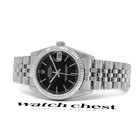 HOME ABOUT US CUSTOMER FEEDBACK CONTACT US Visit the watch chest ebay store to view all items Rolex Datejust 31, Black Dial, Steel & White Gold, 68274 Rolex Datejust 31, Black Dial, Steel & White Gold, 68274 Item Description SKU 8659 Year: ~1997 Condition: Excellent - Shows no to minimal signs of use. Perfect for gifting. The case and bracelet have been expertly and lightly refinished, presenting a pristine appearance with no discernible imperfections. The movement has been professionally cleaned and tested, ensuring it keeps excellent time. Comes With: Watch Chest Certificate of Authenticity,Watch Chest Appraisal, Watch Chest 2-Year Warranty Unlock endless possibilities with a hand preserved Rolex from Watch Chest Timepiece Atelier. Hours of highly skilled work has been poured into this timepiece by a Rolex trained master watchmaker to ensure top performance and integrity. Photography props used in lifestyle photos not included. About Us About Us Payment Shipping Returns Warranty About Us Founded in 2002 by Chris Wiley, Watch Chest has the distinction of being one of the world's first online-exclusive watch atelier. As a small family-owned and operated business, our mission is to personally help you build a watch collection you love. We are guided by core values: Exceptional Client Experiences: Providing personal service for every client. Authenticity & Transparency: Ensuring every timepiece meets strict authenticity standards and every transaction is transparent. Traidition & Craftsmanship: Practicing the timeless art of watchmaking with excellence. Sustainability & Preservation: Sustainably extending the lifespan of watches while preserving their unique history. Payment Payment Watch Chest strives to offer flexibility to our customers via a wide array of payment options. Accepted Payment Methods Include: Credit Card - All major credit cards accepted Trades - Please contact or call to discuss trades Shipping Shipping Orders usually ship ~2-3 working days after the order is placed. If an item goes through the eBay authentication process: After the purchase of an Authenticity Guarantee Eligible Item on eBay, we will ship (expedited and insured) the item to an eBay Authentication Facility for them to carefully inspect the item's authenticity and confirm the item?s listing details. Once the item's authenticity is confirmed by the Authentication Facility, the item is securely shipped to the buyer via signature required 2 day shipping. If the item?s authenticity cannot be verified or the item is not as described, the item is returned to the seller and a refund is issued. If an item does not go through eBay authentication process: With years of experience, Watch Chest provides the safest, most reliable way to ship a high-value item. Extra care is taken as we box your watch in inconspicuous multi-layer packaging and ship overnight to minimize the amount of time between leaving our hands to when it arrives at your door ? fully-insured every step of the way. We believe this attention to detail should be expected. And that it should be free. Returns Returns Watch Chest provides a refund guarantee for any reason within the first 14 days of delivery with the security tag still attached to the article being returned. A return shipping fee applies to all returns. The article must be returned in the same condition received, with all accessories accompanying the article. This can include books, box, etc. All accessories with the article must be returned intact and undamaged. New/Never-worn watches must also be returned with all original factory seals, tags, etc. intact. An 18% restocking fee may also apply to new/never-worn watches. All return fees will be deducted from the refund. Any of these actions not performed by Watch Chest will void a return and/or refund: Removal of security tag Missing accessories Modifications Alterations Damage Sizing "Wear and Tear" If Watch Chest accepts a voided return, any costs associated with the return will be deducted from the refund. This includes shipping costs, repairs, service, and replacement of parts associated with the article's return. Warranty Warranty Please see our store page for full detail of our warranty policies here . Authenticity & Guarantees Certified Authentic We ensure every timepieces meets strict authenticity standards. We do not support the sale of aftermarket watches. Money-Back Guarantee Buy it, try it, and if you don't love it, return the watch within fourteen (14) days for a different watch or refund. Buyer pays return shipping. We Only Sell the Best We hand-select only the top watches, each of which passes a strict multi-point inspection. We only sell what we'd buy and wear ourselves. Your Personal Watch Dealer With over 22 years in business, owner Chris Wiley is here to help you build a watch collection you love. Shop Rolex Models Air-King Datejust Day-Date Daytona Deepsea Explorer GMT-Master II Lady-Datejust Milgauss Oyster Perpetual Pearlmaster Sea-Dweller Sky-Dweller Submariner Yacht-Master FIND A WATCH Not in stock, no problem. We'll find the watch of your dreams. REQUEST NOW SERVICE YOUR WATCH Get your watch serviced by our master watchmakers. SERVICE NOW Let's Stay in Touch! Add us to your eBay saved sellers for news, updates and promotions. STORE HOME CONTACT US Home About Us Customer Feedback Contact Us