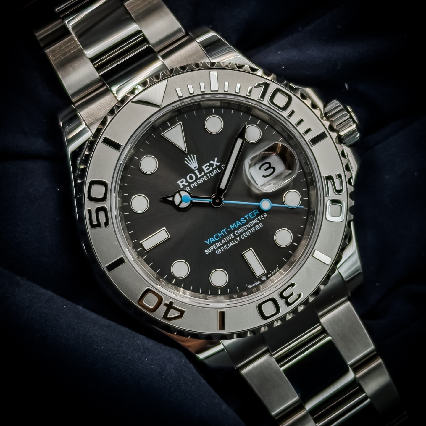 Rolex Yacht-Master 40 Rhodium Dial 126622 B&P Very Good Condition 40mm Stainless Steel Case | Platinum Bezel | Rolex Caliber 3235 Automatic | 70-Hour Power Reserve | Rhodium Sunburst Dial with Blue Accents | Sapphire Crystal | 100m Water Resistance | Oyster Bracelet with Easylink Extension Description The Yacht-Master 126622 blends sporty elegance with subtle luxury—featuring a 40mm stainless steel case, platinum bezel, and a stunning rhodium sunburst dial accented with signature blue text and seconds hand. Powered by the latest-generation Caliber 3235 with a 70-hour power reserve, this is a refined daily wearer with real capability. Clean. Nautical. Complete. Condition Excellent Pre-Owned – Light signs of wear on bracelet visible under close inspection. Case, dial, and crystal are clean. Running strong and within spec. Complete Set Includes Rolex Inner and Outer Boxes Original Warranty Card Oyster Bracelet with Full Links and Easy Link Extension Shipping Ships from Scottsdale, AZ – Priority Overnight via FedEx