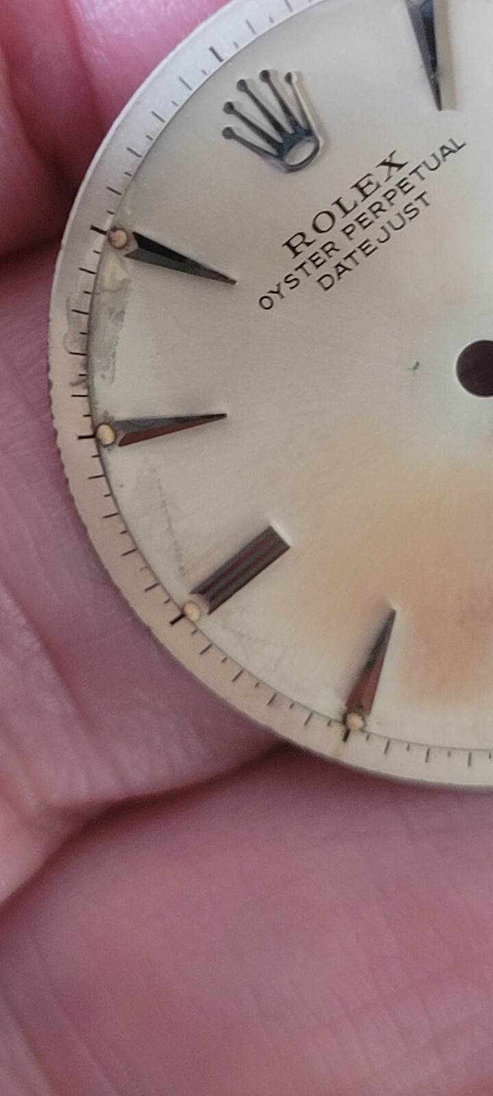 Rolex vintage 36 mm non quick set 1601 dial, finely aged tropical spear markers For steel models. All 100% genuine Rolex untouched!