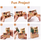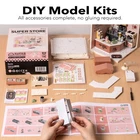 Rolife 9 in 1 Super Creator Miniature Dollhouse Plastic Building Teens Xmas Gift *Note: Due to customs policy, glue and battery (AAA*3) may not be included in the package. Glue: you could use eco-glue, wood glue, or strong glue.The product also does not include roofs and partitions Daily Inspiration Cafe DW001 Age: 8+ Material: ABS, PVC, Paper Assembly Time: 45mins Assembled Size: 163*163*152mm Package Size: 187*70*287mm Pieces: 100 Energy Supply Store DW002 Age: 8+ Material: ABS, PVC, Paper Assembly Time: 60min Assembled Size: 163*163*152mm Package Size: 187*70*287mm Pieces: 102 Daily VC Fruit Store DW003 Age: 8+ Material: ABS, PVC, Paper Assembly Time: 60min Assembled Size: 163*163*152mm Package Size: 187*95*287mm Pieces: 116 Fascinating Book Store DW004 Age: 8+ Material: ABS, PVC, Paper Assembly Time: 60min Assembled Size: 163*163*152mm Package Size: 187*70*287mm Pieces: 108 Golden Wheat Bakery DW005 Age: 8+ Material: ABS, PVC, Paper Assembly Time: 60min Assembled Size: 163*163*152mm Package Size: 187*70*287mm Pieces: 110 Golden Wheat Bakery DW005 Age: 8+ Material: ABS, PVC, Paper Assembly Time: 60min Assembled Size: 163*163*152mm Package Size: 187*70*287mm Pieces: 110 Cozy Living Lounge DW007 Age: 8+ Material: ABS, PVC, Paper Assembly Time: 45mins Assembled Size: 163*163*152mm Package Size: 187*70*287mm Pieces: 114 Happy Meals Kitchen DW008 Age: 8+ Material: ABS, PVC, Paper Assembly Time: 45min Assembled Size: 163*163*152mm Package Size: 187*70*287mm Pieces: 152 Sweet Dream Bedroom DW009 Age: 8+ Material: ABS, PVC, Paper Assembly Time: 45min Assembled Size: 163*163*152mm Package Size: 187*70*287mm Pieces: 95 Yum Yum Burgers DW010 Age: 14+ Material: ABS, PVC, Paper Assembly Time: 2-3h Assembly Size: 163*163*152mm Package Size: 187*70*287mm Pieces: 110pcs Sweet Sips Tea DW011 Age: 14+ Material: ABS, PVC, Paper Assembly Time: 1h Assembly Size:163*163*152mm Package Size: 187*70*287mm Pieces: 154pcs Leisurely Cheers Bar DW012 Age: 14+ Material: ABS, PVC, Paper Assembly Time: 1h Assembly Size: 163*163*152mm Package Size: 187*70*287mm Pieces: 142pcs
