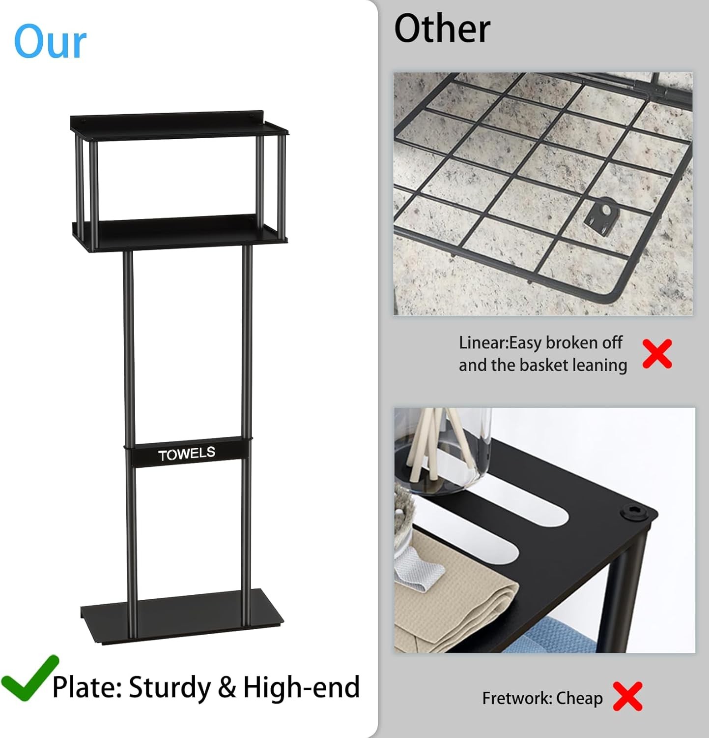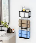 LARGE CAPACITY - The combination design of the wall bathroom towel rack with shelves and toilet paper basket can easily store all kinds of aromatherapy, green plants, candle cups, rolling papers and towels, which makes it convenient for you to access all kinds of items in time, and you don't have to worry about bathroom clutter anymore. UPGRADED PLATE DESIGN - The towel rack is made of a combination of metal plates, not a non-skeletonized or line material. Our bathroom towel storage are well-made, precision-coated surface, sturdy , simple and generous, bring a spa-like feeling to the bathroom or closet; suitable for placing above the toilet, cabinet, RV or small space; a thoughtful housewarming gift that combines functionality and artistry. MULTIFUNCTIONAL STORAGE - Our wall towel rack is different from traditional towel racks, it can independently store 5 large size bath towels, the top shelf can also be used for items such as aromatherapy and greenery, and the storage basket can also store 2 rolls of paper. Easy to access without interfering with each other. HIGH QUALITY MATERIAL - The towel storage rack is made of high quality metal, the surface is frosted black treatment. Waterproof and rustproof, suitable for bathrooms, showers and other wet environments. Ideal solution for you to save space in your home. EASY INSTALLATION - Screwed hardware and installation manual included for quick and easy installation; installs in less than 10 minutes near the shower, above the toilet or in a closet. Dimensions: 30"H x 11.81"L x 5.51"W.