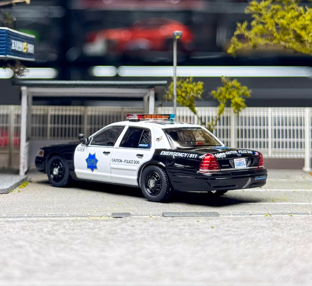 $ 22.7EY Rollin 1:64 SFPD Police Dog CV CROWN VICTORIA Model Diecast Display Car