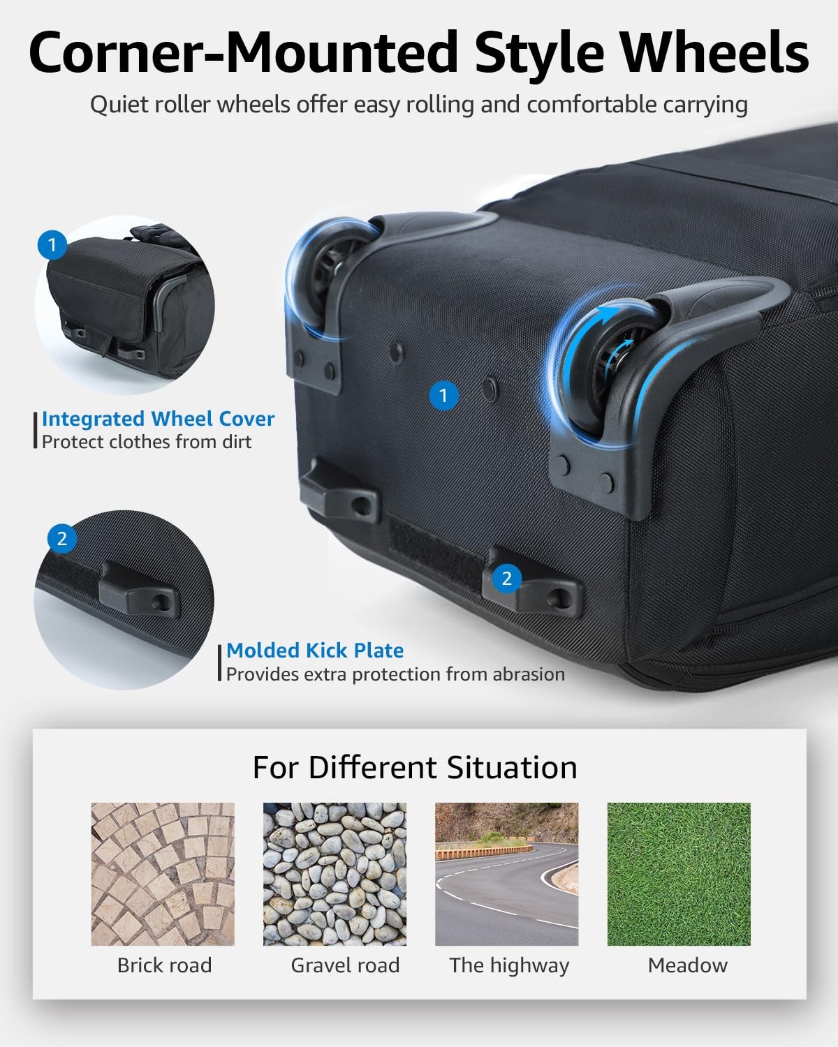 Premium Large-Capacity Rolling Laptop Business Backpack - Your Ultimate Travel Companion Product Description: Elevate your business travel experience with our Premium Large-Capacity Rolling Laptop Business Backpack. Designed for the modern professional on the go, this backpack combines style, functionality, and durability to meet all your travel needs. Versatile Carry Options: Switch seamlessly between a backpack and a rolling suitcase with our innovative dual-carry design. The padded, adjustable shoulder straps and ergonomic handle ensure comfort and ease whether you're navigating through airport terminals or bustling city streets. Spacious Organization: Our travel backpack boasts a generous main compartment that can accommodate up to a 17-inch laptop, with additional pockets for , documents, and other essentials. The front organizer section is perfect for quick access to your , keys, and travel documents. Dedicated Laptop Compartment: Protect your valuable devices with a padded, dedicated laptop compartment that ensures safekeeping during your travels. Additional Features: Color: Black Size: 12.59x6.1x17.9inch Material: 900D twill nylon with high-density material coated Multiple compartments for organized storage Side pockets for water bottles or umbrellas Reflective accents for visibility during early mornings or late evenings Whether you're a globetrotting executive or a busy commuter, our Large-Capacity Rolling Laptop Backpack is the perfect blend of sophistication and practicality, making it your go-to choice for all your travel adventures. Join the thousands of satisfied customers and upgrade your travel gear today! Note: The handle of this backpack is shorter, so there may be a 1-2 inch deviation in the size. Please measure the size before purchasing 30L LARGE CAPACITY: This roller backpack measures 12.59 x 6.1 x 17.9 inches, and includes a padded sleeve for laptops up to 15.6 inches, perfect for business trips. Other features include a quick pocket for your passport, a front organizer, and side pockets for bottles. A well-designed rolling backpack allows you to access your belongings easily QUIET ROLLER WHEELS: The inset wheel design of the 2-wheel suitcase optimally reduces the overall footprint. It offers more storage space than a 4-wheel model of the same height. Additionally, due to the fixed trajectory of the wheels, they are less prone to damage and provide better stability on uneven surfaces PROTECTIVE MATERIAL: The travel rolling backpack is made of sturdy tear 1680D polyester fabric. Business work backpack equipped with a corner guard and stand feet to protect the backpack from abrasion. The breathable padded back design can relieve pressure on your back, making you more comfortable EASY TO CARRY: Hideaway telescoping and locking handle stores easily under the top zippered cover, ensuring a soft touch and comfortable grip. Shoulder straps can be tucked away in the back panel when not in use, providing another carry option as a roller backpack USB CHARGING PORT: Business roller backpack with built-in USB charger cable design, which provides a more convenient way to charge your by connecting your power bank and cable. Rolling backpacks for adults with wheels can be placed under the subway seat, suitable for a weekend trip