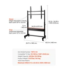 Manual Floor TV Stand Model: Single Bracket Upgrade your TV experience with this universal manual stand! It lets you move your TV for the ideal viewing angle, making it suitable for the living room, bedroom, or office. With durable steel construction and a stylish design, it complements your décor. Our moving TV stand is designed for stability and supports up to 44 lbs, ensuring your TV remains steady and wobble-free during viewing for a relaxed experience. With various adjustment options, this movable TV stand caters to different viewing preferences, ensuring your TV is always at the ideal height for comfortable viewing. Our mobile TV mount is equipped with swivel wheels, allowing you to move the TV quickly from one room to another. This portable TV mount features a compact design, ideal for small spaces, and suitable for those who don’t want their TV to take up the whole room. Features & Details Universal Compatibility: This rolling TV stand is designed for 17-55 in LED, LCD, and OLED flat and curved TVs, supporting VESA mounting patterns from 75 x 75 mm to 200 x 200 mm. It ensures ideal compatibility with your TV, making installation easy regardless of the size or type of your TV. Stability and Security: Our moving TV stand offers exceptional stability, supporting up to 44 lbs to prevent tipping. The adjustable tilt design also allows you to customize the viewing angle according to your preferences, ensuring the ideal experience every time you watch. Flexible Adjustability: This movable TV stand provides height adjustment options, allowing you to easily set the TV at the ideal height based on your room layout and viewing needs. The panel can rotate 90° in one direction, allowing for easy switching between landscape and portrait modes. Convenient Mobility: Equipped with swivel wheels, this mobile TV mount allows you to effortlessly rotate to adjust angles or move it to your desired position. You can easily slide it to different spots in the room. Space-Saving Design: Our portable TV mount features a compact design with a base that easily fits under your TV cabinet, helping save valuable space. Additionally, the cable management clips at the back ensure your setup stays secure and tidy. Model: Single Bracket Tray Features & Details Universal Compatibility: This rolling TV stand is designed for 32-70 in LED, LCD, and OLED flat and curved TVs, supporting VESA mounting patterns from 100 x 100 to 600 x 400 mm. It ensures ideal compatibility with your TV, making installation easy regardless of the size or type of your TV. Stability and Security: Our moving TV stand offers exceptional stability, supporting up to 99 lbs to prevent tipping. The adjustable tilt design also allows you to customize the viewing angle according to your preferences, ensuring the ideal experience every time you watch. Flexible Adjustability: This movable TV stand provides height adjustment options, allowing you to easily set the TV at the ideal height based on your room layout and viewing needs. The ±25° left-right rotation feature lets you rotate the TV freely for an ideal all-around viewing experience. Convenient Mobility: Equipped with swivel wheels, this mobile TV mount allows you to effortlessly rotate to adjust angles or move it to your desired position. You can easily slide it to different spots in the room. Space-Saving Design: Our portable TV mount features a compact design with a base that easily fits under your TV cabinet, helping save valuable space. Additionally, the cable management clips at the back ensure your setup stays secure and tidy. Model: Double Bracket Features & Details Universal Compatibility: This rolling TV stand is designed for 32-65 in LED, LCD, and OLED flat and curved TVs, supporting VESA mounting patterns from 100 x 100 to 400 x 400 mm. It ensures ideal compatibility with your TV, making installation easy regardless of the size or type of your TV. Stability and Security: Our moving TV stand offers exceptional stability, supporting up to 88 lbs to prevent tipping. The adjustable tilt design also allows you to customize the viewing angle according to your preferences, ensuring the ideal experience every time you watch. Flexible Adjustability: This movable TV stand provides height adjustment options, allowing you to easily set the TV at the ideal height based on your room layout and viewing needs. Convenient Mobility: Equipped with swivel wheels, this mobile TV mount allows you to effortlessly rotate to adjust angles or move it to your desired position. You can easily slide it to different spots in the room. Space-Saving Design: Our portable TV mount features a compact design with a base that easily fits under your TV cabinet, helping save valuable space. Additionally, the cable management clips at the back ensure your setup stays secure and tidy. Model: Double Bracket Tray Features & Details Universal Compatibility: This rolling TV stand is designed for 55-100 in LED, LCD, and OLED flat and curved TVs, supporting a maximum VESA 800 x 600 mm. It ensures ideal compatibility with your TV, making installation easy regardless of the size or type of your TV. Stability and Security: Our moving TV stand offers exceptional stability, supporting up to 205 lbs to prevent tipping. The adjustable tilt design also allows you to customize the viewing angle according to your preferences, ensuring the ideal experience every time you watch. Flexible Adjustability: This movable TV stand provides height adjustment options, allowing you to easily set the TV at the ideal height based on your room layout and viewing needs. Convenient Mobility: Equipped with swivel wheels, this mobile TV mount allows you to effortlessly rotate to adjust angles or move it to your desired position. You can easily slide it to different spots in the room. Space-Saving Design: Our portable TV mount features a compact design with a base that easily fits under your TV cabinet, helping save valuable space. Additionally, the cable