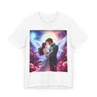 Introducing our comfortable Unisex Jersey T-Shirt, perfect for any casual outing or workout session. This t-shirt features a dreamy design that exudes romance and whimsy, making it great for those who appreciate art and beauty. The lightweight, breathable fabric ensures you'll feel fresh and relaxed all day long. Ideal for gifting on occasions like Valentine's Day, anniversaries, or birthdays, this t-shirt suits anyone looking to express their unique style. With its laid-back fit, it's a fantastic addition to any wardrobe, suitable for both men and women. Product features - Ribbed knit collar retains shape and adds elasticity. - Shoulder tape stabilizes seams for long-lasting wear. - Side seams enhance structure and prolong the shirt's life. - Ethically sourced 100% cotton fabric for a soft feel. - Lightweight and breathable, perfect for layering. Care instructions - Machine wash: cold (max 30C or 90F) - Non-chlorine: bleach as needed - Tumble dry: low heat - Iron, steam or dry: low heat - Do not dryclean