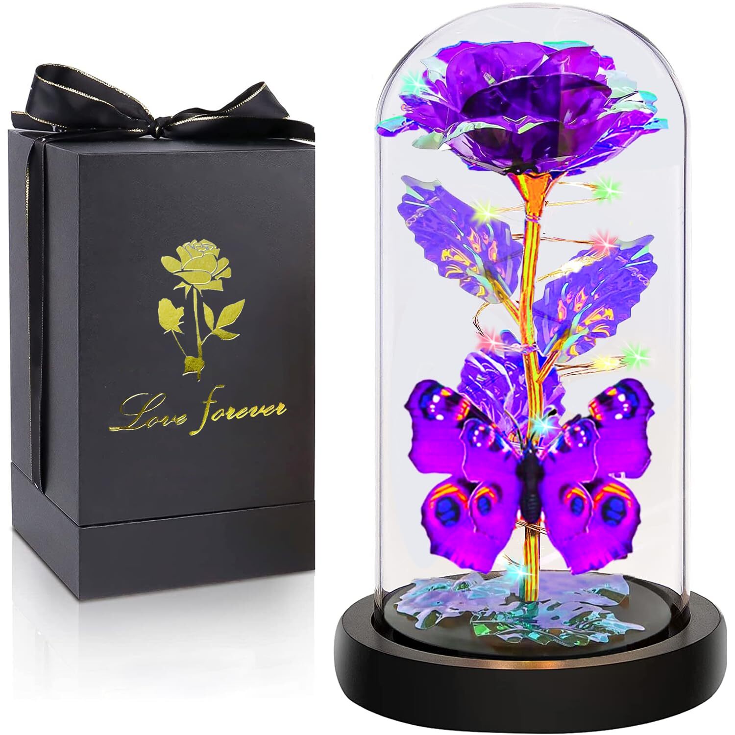 Perfect Valentines Day Gifts For Women: Gifts for women who have everything, the flower is beautiful with stunning color and sparkle, the colorful rose flower in glass dome is perfect and impeccable,will never wither and die, the packaging is spot on- it came in a beautiful sturdy black decorative box, light up rose gifts for her, Valentines flower light gifts for women Beautiful Gifts for Any Woman: Mom Christmas gifts for her, birthday gifts for women, Christmas gifts for grandma, romantic sweet gifts for her women mom gifts colorful rose means that the roses are perfectly and eternally stored in a glass dome, very suitable as Christmas gifts, Mother's Day Gifts, Valentines Day Gifts, or birthday gifts for your mom, wife, girlfriend, grandma, or mother-in-law Valentines for Her: Christmas presents for mom, Mothers day gifts for women, Xmas gifts for women,Christmas gifts for her, light up rose gifts, the details are wonderful and will surely brighten your day, it’s a great gift for any occasion, Xmas presents, best gifts for girlfriend, friendship gifts for women, valentines day gifts for wife, Mothers day, birthday gifts for mom grandma, Valentines rose gifts for gf LED Light Up Rose Gifts: Powered by 3 AAA batteries (not included), led lights are twined around rose, once you turn it on you see just how bright it lights up and how beautiful it really is, nice and bright, looks great in the day and night, it adds a romantic and sweet atmosphere and as a indoors decoration on Christmas and other holidays Beautiful Handmade Flower Decoration: Glass Rose is a romantic gifts decorations for Christmas Valentine's Day, Wedding, Engagement, Mothers Day, Anniversary Day, Birthday, housewarmings, which will give her a surprise, make her happy and create much romantics. Nothing gets the romance flowing like a glass eternal rose, appealing to all types of women at any age
