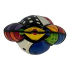 This Romero Britto figurine is a rare and retired piece from his limited edition collection. It features a beautiful geometric pattern in multicolor and depicts a beagle dog subject. The figurine stands at 5.5 inches tall and was manufactured in 2010 in China. With a glossy finish, this pop art style sculpture is perfect for all occasions and adds a touch of art to any collection. The intricate details and high-quality construction make it a must-have for any collector of decorative figurines. Don't miss your chance to own this unique piece from one of the most respected artists in the world. Very good condition. Minor wear from handling. See photos.