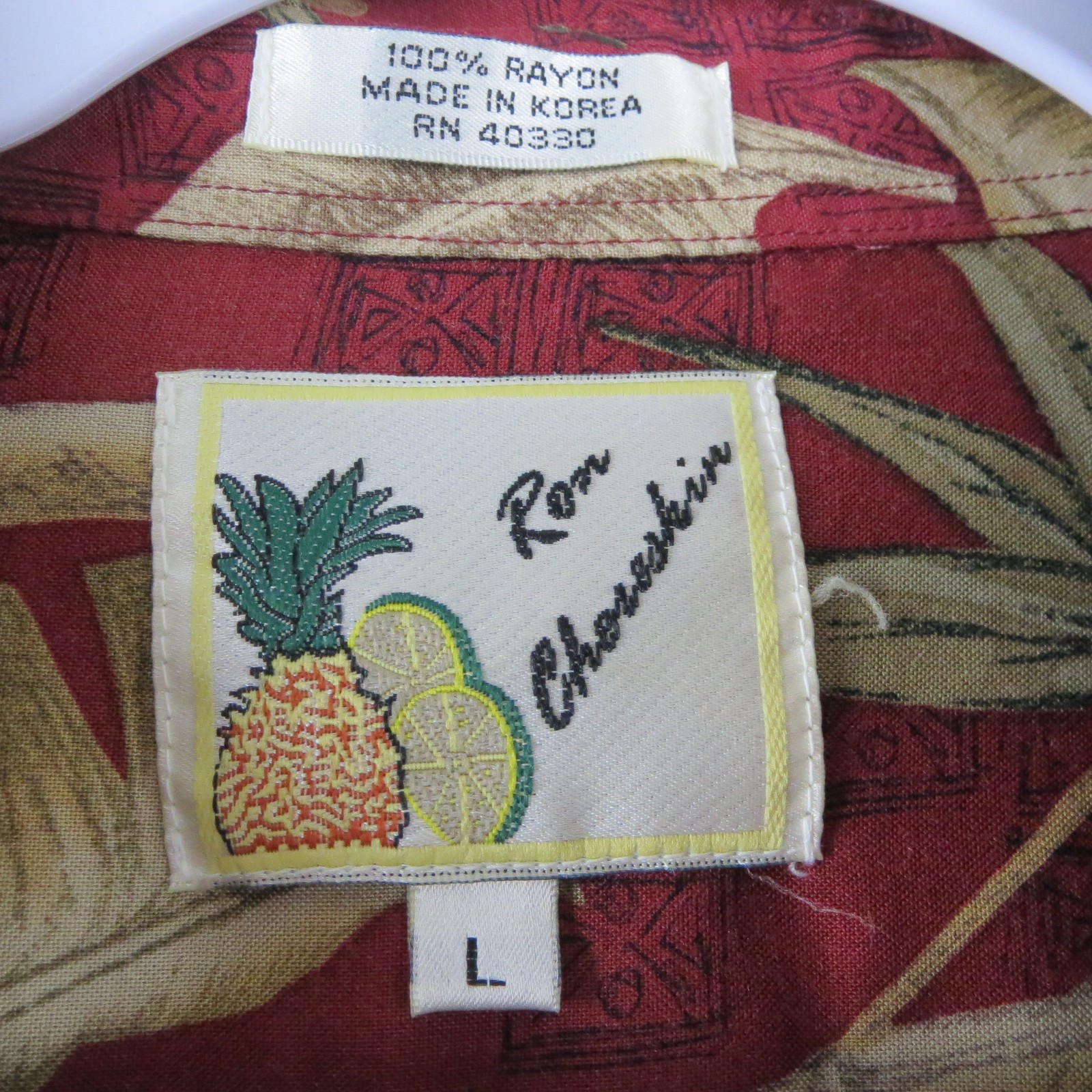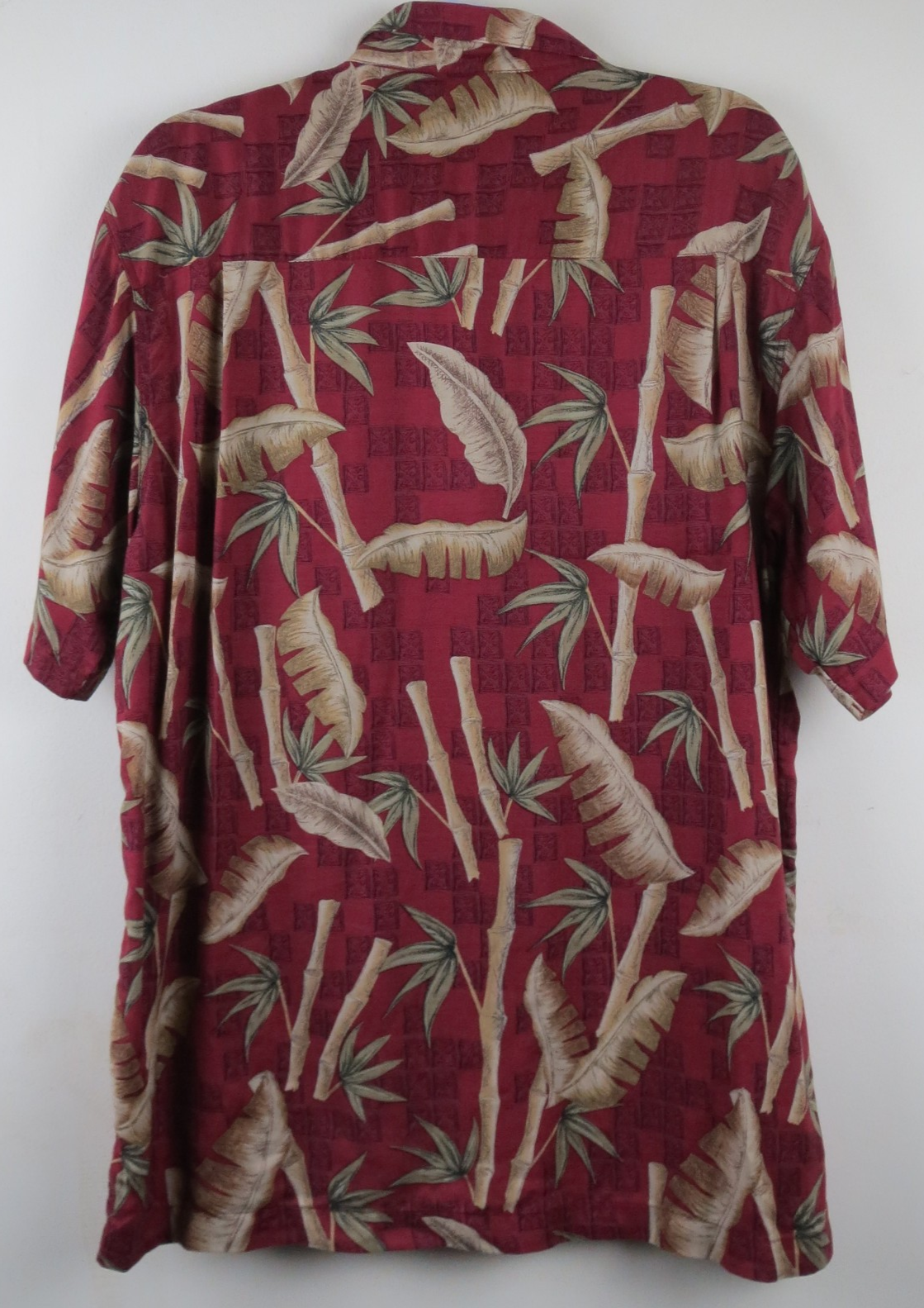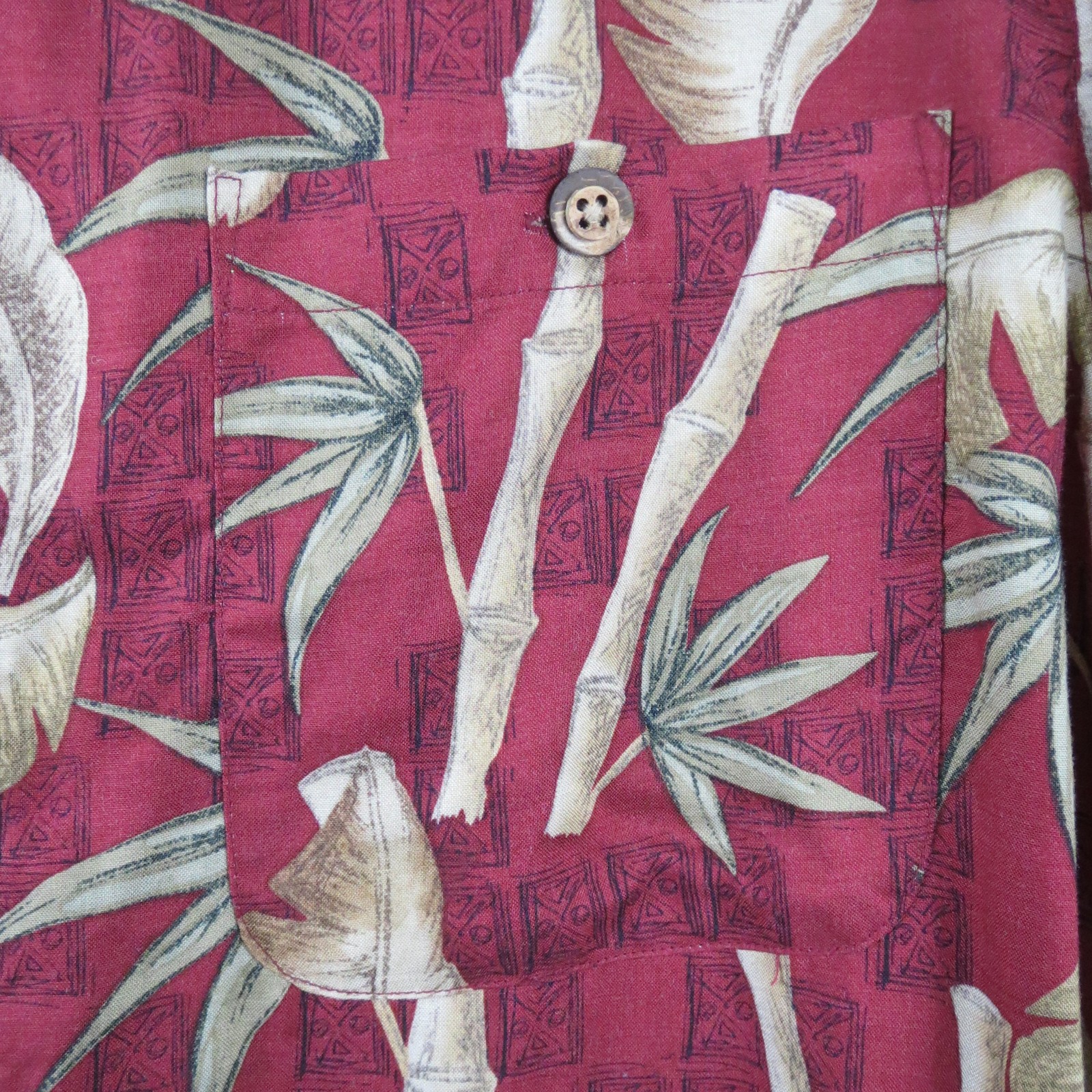 Ron Chereskin Men's L Hawaiian Shirt Red Palm Tree Tropical Button Up 100% Rayon