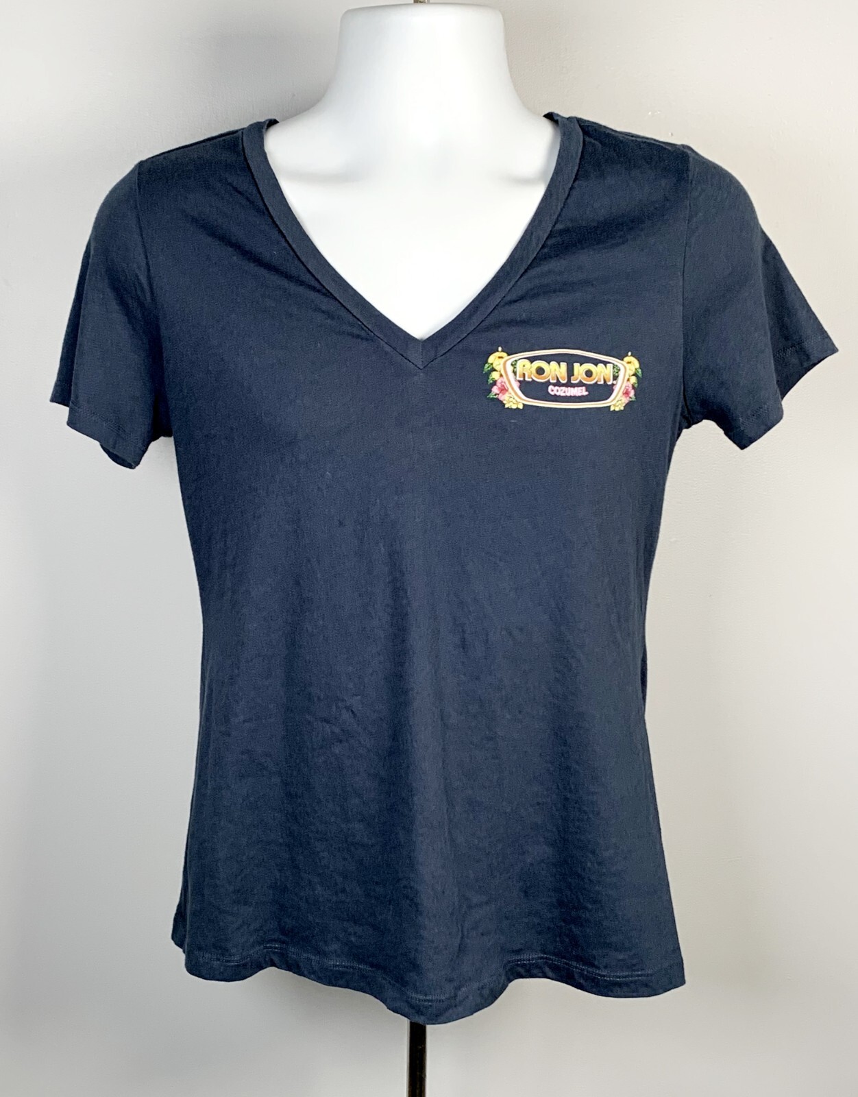 SIZE: Medium CONDITION: pre owned - no holes or stains MATERIAL: 40% polyester/60% cotton COLOR: blue EXTRA: Ron Jon Cozumel on front and a beach scene on back NECKLINE TO HEMLINE MEASUREMENT: 24" ARMPIT TO ARMPIT MEASUREMENT: 17.5" BRAND: Ron Jon Surf Shop BOX Q
