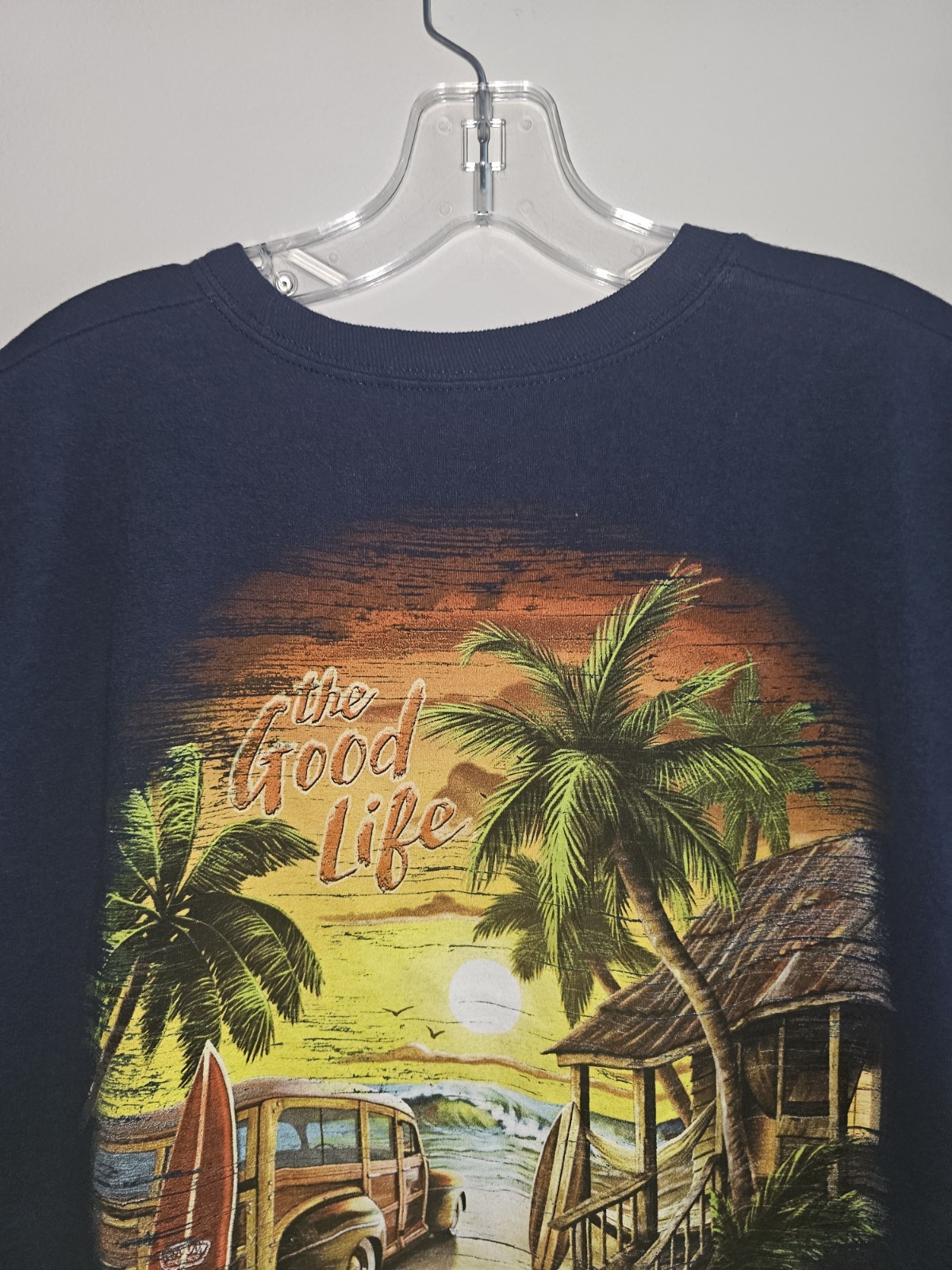Vintage quality Waterfront Sunset Bar t-shirt size XL arrived quickly well packaged in exc like-new pre-owned condition as described. Good value for the price. Size is labeled XL, but fits more like a Large, a little tight fit for me, but still a cool shirt đź‘•. Great seller! Would buy from again! Thanks so much!!