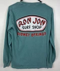 Ron John Surf Shop Disney Springs T Shirt Sz Small Longsleeve. Condition/flaws: In good condition, has some minor flaws. Has a very light discoloration/fading of color around the shoulder/collar area and sleeve cuffs. Also has a very light spot on the sleeve. See pictures, sold as is. Measurements are 18” pit to pit and 26” collar to front. Ships usps ground advantage.