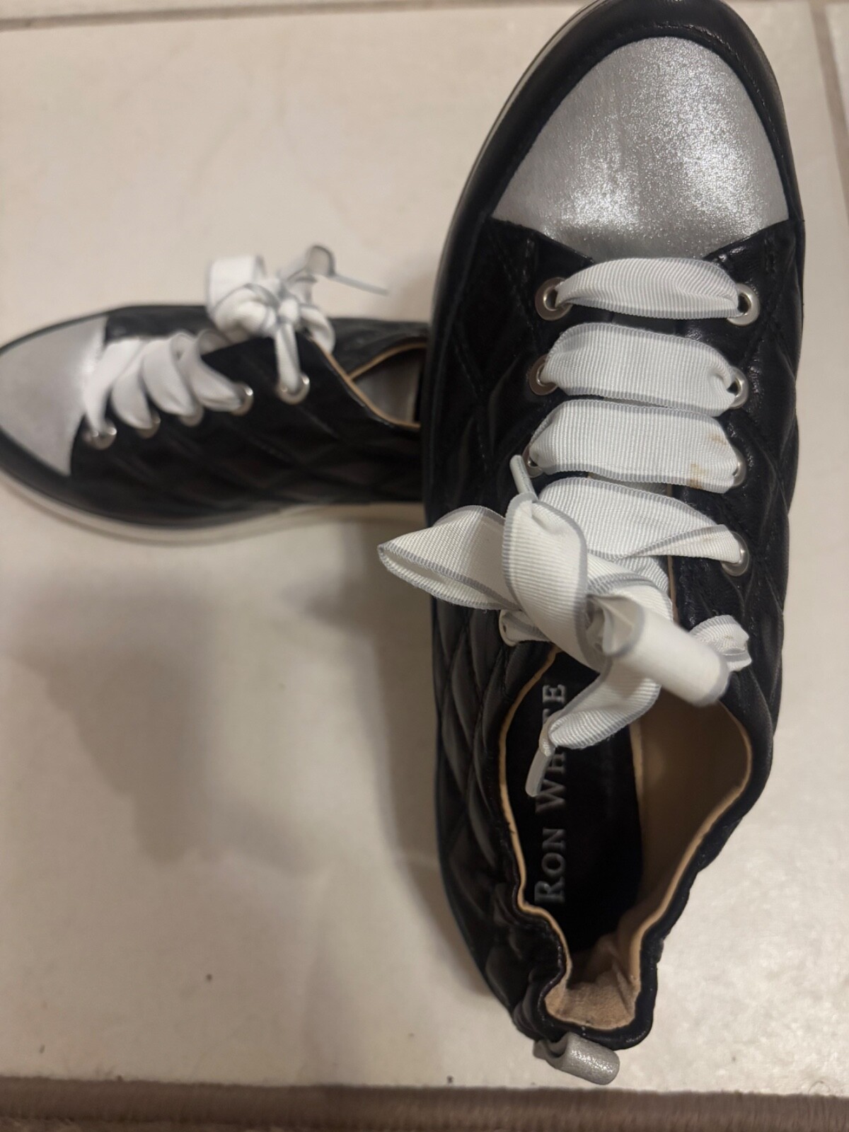 Ron White Novella Quilted Women’s Sneakers Black/ Silver Lace up Size 361/2. Condition is Pre-owned. Shipped with USPS Ground Advantage. Waterproof