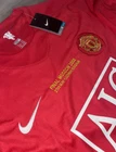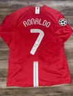 Show your support for Manchester United and one of their greatest players of all time, Cristiano Ronaldo, with this 2008 UCL home red jersey. The jersey features Ronaldo's iconic #7 and is made by Nike. It is perfect for any soccer fan or collector of sports memorabilia. The jersey is a size medium and made in Indonesia. It is great for wearing to games or displaying in your collection. Get this piece of soccer history today!