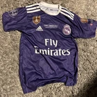 Show your love for Cristiano Ronaldo and Real Madrid with this authentic adidas jersey. Made from high-quality materials, this jersey is perfect for any soccer fan. The purple color and iconic Real Madrid logo make this jersey a must-have for any true fan. Featuring a capacity of 8 oz and a size of Euro 152 (Youth Large), this jersey is perfect for wearing to games or as a part of your fan apparel collection. Made in Jersey, this jersey is a great addition to any sports memorabilia collection. Get yours today and show your support for the greatest soccer player of all time!