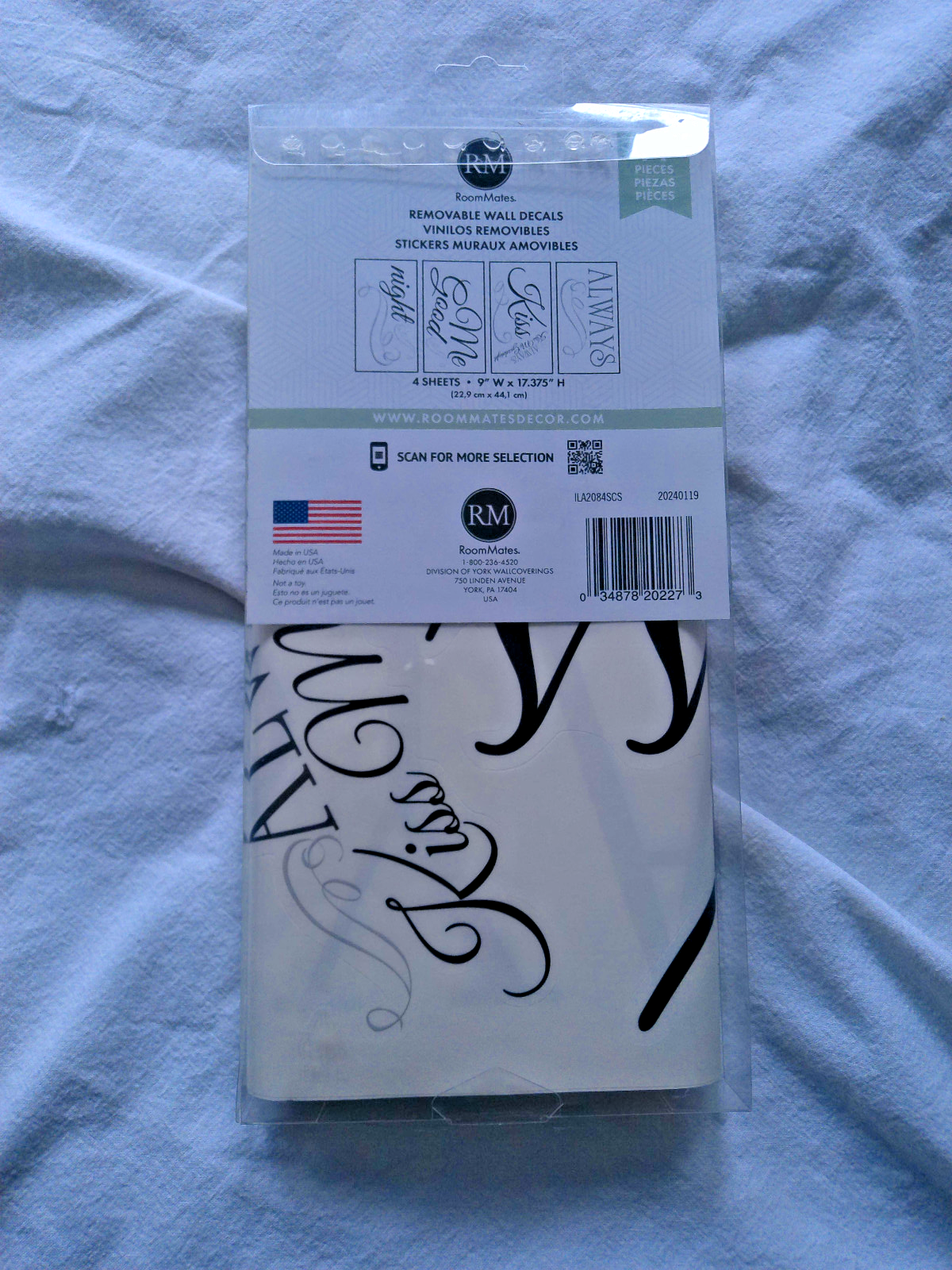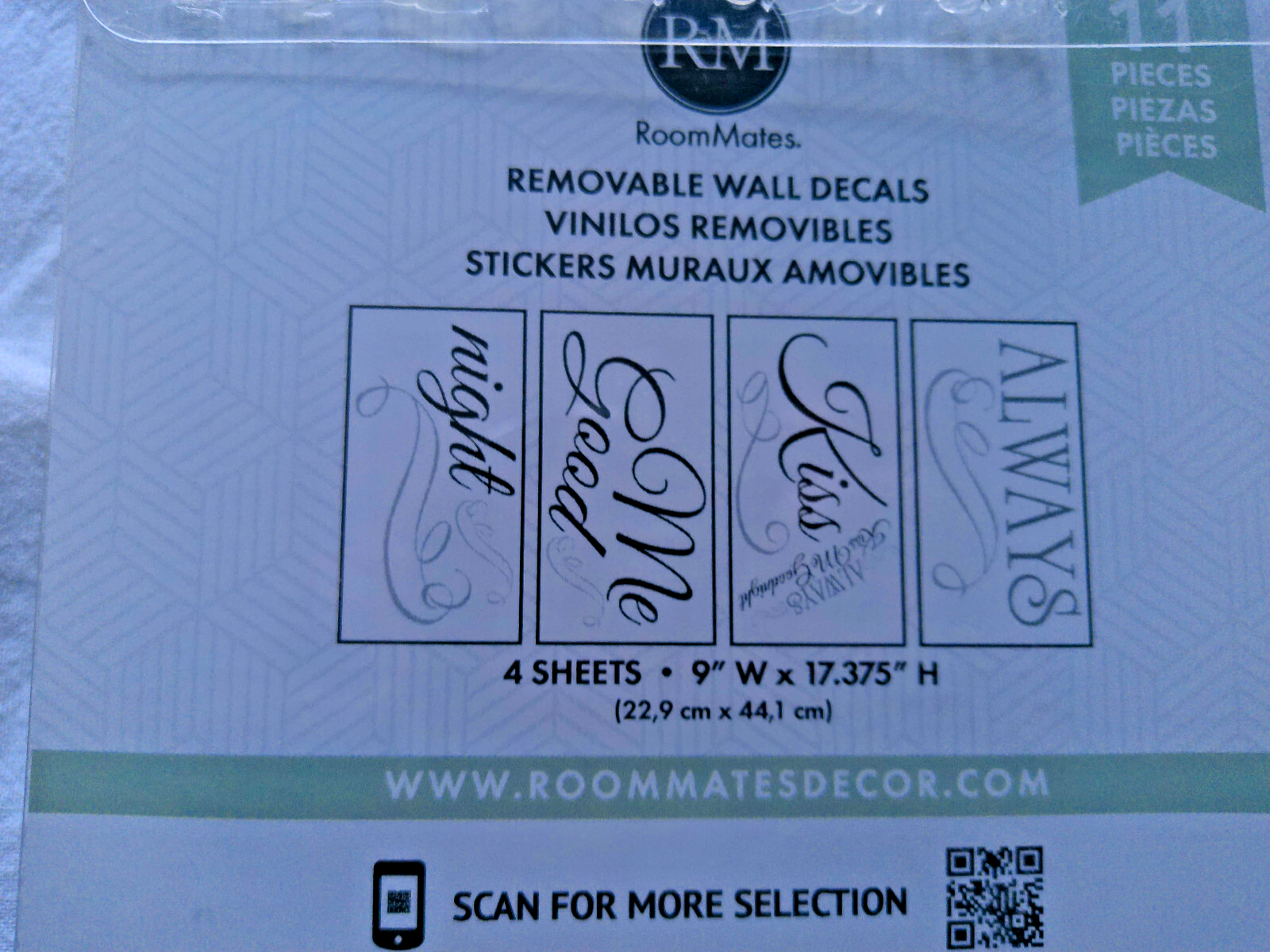 Always Kiss Me Goodnight 11 Pieces RoomMates Removable Wall Decals 4 Sheets 9" W x 17.375" H Made In USA Sealed RETURNS RULES: New With Tags items and Unopened Packages will not be send back once it is opened. If item arrive broken, you need to take photo of the damages to show me proof.