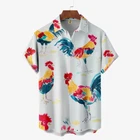 Rooster Art Chest Pocket Short Sleeve Hawaiian Shirt For Men US Size NEW