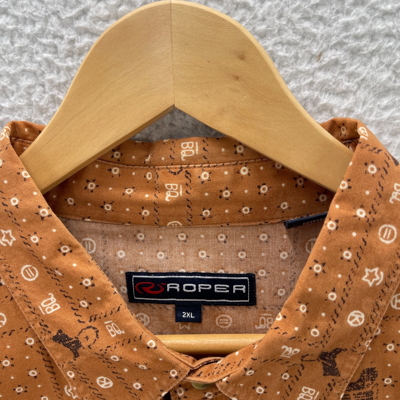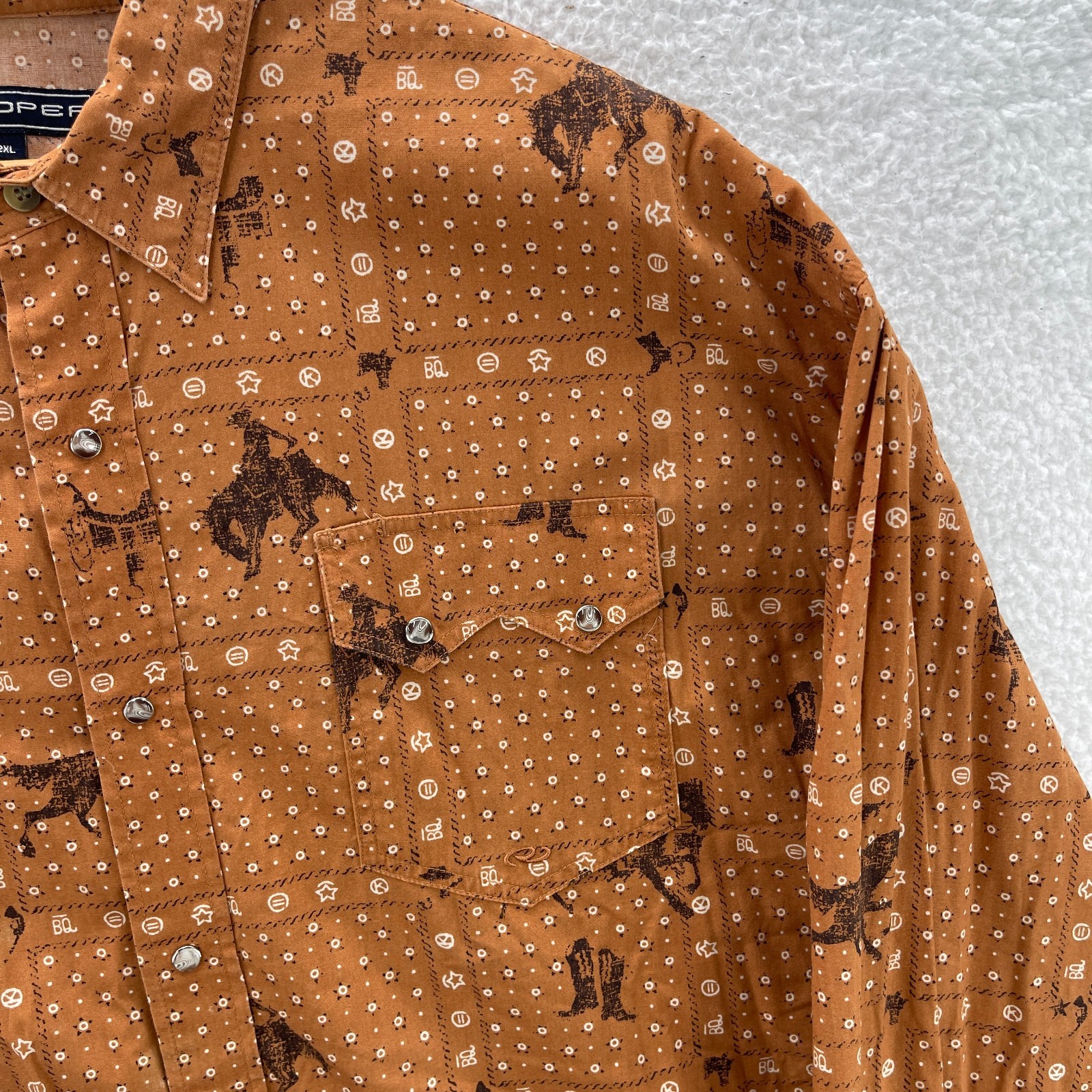 Roper Shirt Mens 2XL Orange Western Pearl Snap Sawtooth Cowboy Rodeo Ranch Work Sizing in the title and item specifics are based on what the tag says. Measurements can be seen in the photos.