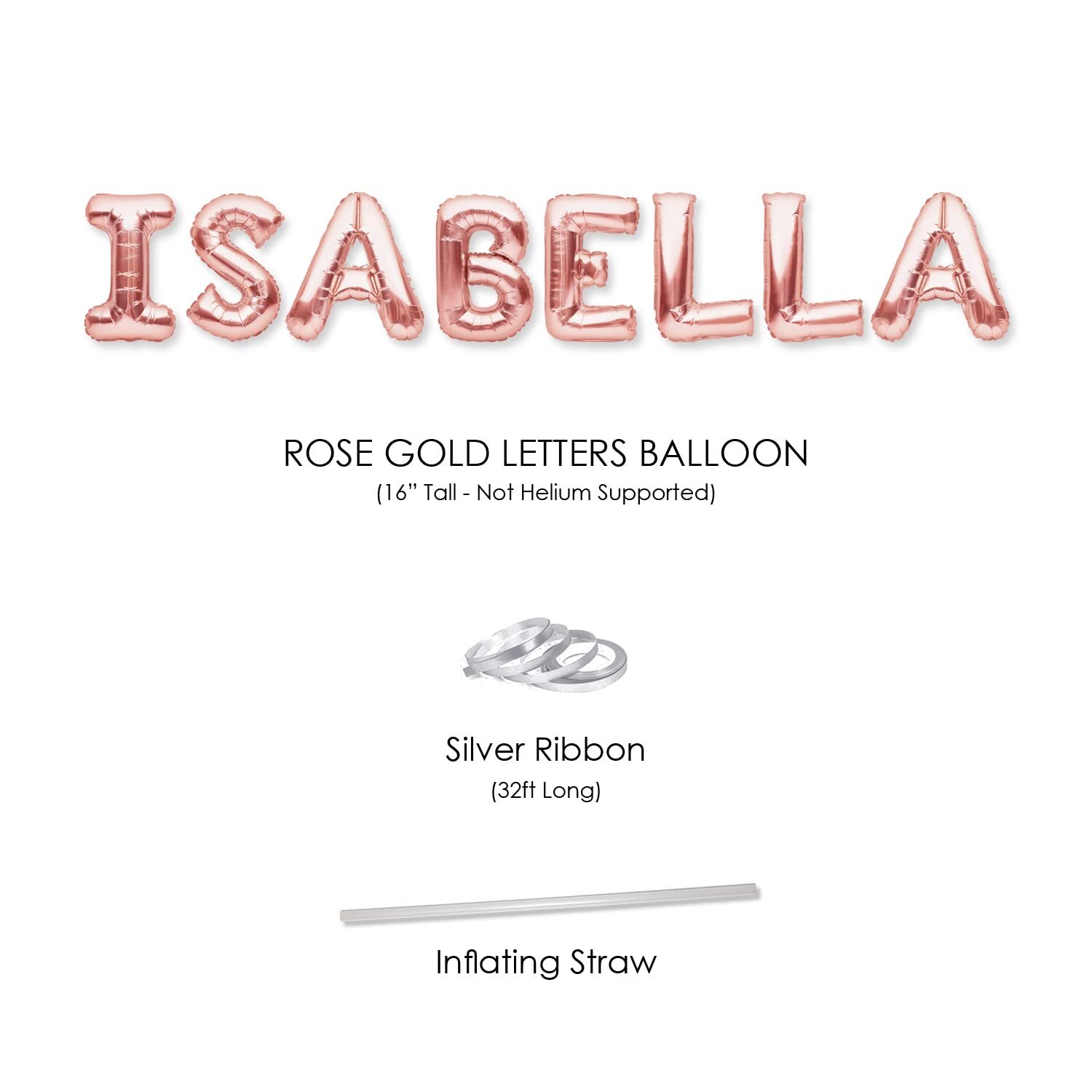 PartyForever ISABELLA Balloon Banner Big 16 Inch Rose Gold Foil Balloons Letters Name for Women and Girls Birthday Party Decorations and Wedding Supplies for Her Big Rose Gold Glitter "ISABELLA" Balloon Foil 16 inch Letters Banner that will stand out and make your party rock. Easy To Inflating/Deflating and Assembling. Includes 32fit Long Silver Ribbon and 8 inch Straw for inflating and deflating the balloons. IMPORTANT: Does NOT Support Helium, Can't Float. Should be gently filled 90%-95% full with AIR. Preferably use the the provided straw and NOT an air pump. Perfect Addition for: Birthday Party, Wedding Party, Baby Shower, Gender Reveal Party, Bridal shower, Surprise party and more We strive to provide our customers with only the finest products and most attentive service. So don't delay. Order today! Big Rose Gold Glitter "ISABELLA" Balloon Foil 16 inch Letters Banner that will stand out and make your party rock. Easy To Inflating/Deflating and Assembling. Includes 32fit Long Silver Ribbon and 8 inch Straw for inflating and deflating the balloons. IMPORTANT: Does NOT Support Helium, Can't Float. Should be gently filled 90%-95% full with AIR. Preferably use the the provided straw and NOT an air pump. Perfect Addition for: Birthday Party, Wedding Party, Baby Shower, Gender Reveal Party, Bridal shower, Surprise party and more We strive to provide our customers with only the finest products and most attentive service. So don't delay. Order today! Shipping from the USA All of our products are shipped from the USA, ensuring quick delivery to your destination. Payment We offer the following payment methods: PayPal, credit card, bank transfer, and eBay's secure payment system. Free Shipping & Free Returns Shipping within the USA is FREE. Additionally, any return is absolutely free for you. Risk-Free Purchase You have the option to return an item within 30 days without any justification. We cover the return shipping costs! Fast Shipping We ship immediately upon receipt of payment. Generally, the package is delivered within 2-3 days in the USA. If it takes longer, we will contact you. Quality and Costs Made in Europe, USA, China No customs fees or additional charges Total satisfaction guarantee Invoice with declared VAT available upon request in .pdf format Feedback Your feedback is very important to us. After you pay for your purchase, you will automatically receive positive feedback from us.
