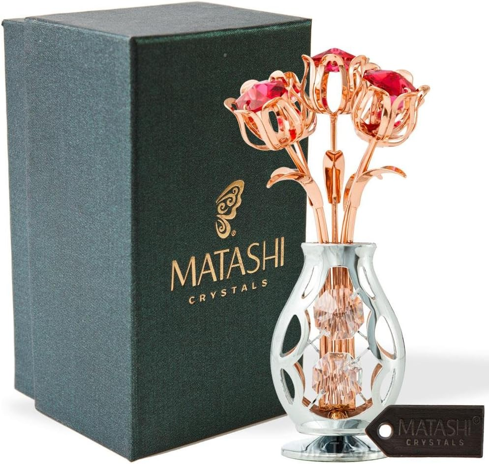 Store New Arrivals Add to Favorite View Feedback Contact Rose Gold and Chrome Plated Flowers Bouquet and Vase Ornament with Crys Description Item model number MTFL12993RG Number of Items 1 Warranty Type Limited Plant or Animal Product Type Rose Unit Count 1 Count Room Type Kitchen, Bedroom, Living Room, Desktop Table Top, Dining Room Product Dimensions 1.5"D x 1.5"W x 4.5"H Material Rose Gold Plated, Crystal Seasons All Is Discontinued By Manufacturer No Specific Uses For Product Mothers Day Home Office Decor Gift Mom Mother Gold Flower Anniversary Birthday Item Package Quantity 1 Indoor/Outdoor Usage Indoor Item Weight 0.317 ounces Package Information Box Occasion Mother's Day, Christmas, Anniversary, Birthday, Valentine's Day Special Feature Water Resistant Color Rose Gold & Silver Shape Novelty Recommended Uses For Product Mother's Day Gift, Home Decoration, Gift for Mom Included Components Vase, Base, Storage Box Scent Unscented The Perfect Mother's Day Gift: Make Mother’s Day unforgettable with this beautifully designed keepsake, ideal for Mother’s Day gifts for mom, grandma, or wife. Whether you're looking for a unique Mother’s Day gift basket, a sentimental present for mom from son, or a heartfelt Mother’s Day gift for your sister, this elegant gift is a timeless expression of love and gratitude. A truly meaningful way to celebrate the special women in your life. Golden Flower Bouquet – These long-stemmed golden flowers sit inside a beautiful matching base, adding a lifetime of beauty to your home, office or living room décor Gold and Crystal Design – The sturdy, elegant vase and precision flowers are crafted with 24k gold plating and fitted with colorful Matashi crystals for a gorgeous look. Uplifting Home Décor – Decorative pieces good for all styles and color palettes, this gold table top decoration adds classic sophistication to any living area. Dimensions: 5 x 1.5 x 1.5 inches WE'VE GOT YOU COVERED - Experience our commitment to excellence with premium products that come with a 2-year craftsmanship promise. Enjoy lasting quality and peace of mind with every purchase. Product Description Make Her Heart Shine This Mother’s Day! Gift Mom an elegant Matashi crystal keepsake, as radiant as her love. A timeless treasure to remind her how special she is every day. Elegant Expressions: Rose Gold Plated Flower Collection Luxury Gift Packing Admire the timeless beauty of our rose gold-plated flower bouquet, elegantly stored in an exquisite luxury gift box. Perfact Gift Embrace sentimentality with our enduring symbols of love, each flower embodying love and appreciation Trusted Quality Experience quality you can trust with our Matashi keepsake ornaments, crafted with precision and care for lasting beauty and joy. Home Decor Gift for Mom Transform any space with our rose gold-plated flower in vase ornament, perfect for enhancing bedroom decor ABOUT US We offer the best prices around on high quality products. Our E-store includes media such as books, movies, music and games while offering electronics, toys, sporting apparel, clothing, tools, general home, garden items and more. SHIPPING We are always working hard to ensure your package arrives as soon as possible. Please understand that some factors like weather, high postal traffic, and the performance of shipping companies are outside of our control. RETURNS We offer a 30-Day Return Policy on items which you are not completely satisfied with. You have the option for a full-refund or an exchange of the item. PAYMENT We accept PayPal. CONTACT US This page content is yet to come Please ad us to your favorite seller and visit again later Thank You CUSTOMER SATISFACTION We try our very best to make sure every customer is completely satisfied. If there's a problem, message us! We're happy to help.
