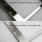 1mm thick T304 Stainless Steel License Frame come with aluminum screw cap and stainless steel screw Size:12.25 x 6.5 x 1/8 inch, inside area 11" x 4.5" Fit all USA standard license plate frame IF YOUR REGISTER STICKER IS ON THE BOTTOM OF THE FRAME THIS MAY BLOCK YOUR STICKER SO IT CAN ONLY BE USE ON THE FRONT Laser Etched Black lettering which the word it wont peel off or fade Frame color is produced by an electrochemical process that creates a thin layer of chrome oxide on the stainless steel This listing is for one license frame only if you want front and rear please purchase two We also carry different style and can customized your own word license frame please check out our ebay store or contact us for the link of the listing