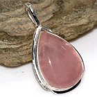 Rose Quartz 925 Silver Plated Fine Finish Gemstone Pendant 1.7" GW