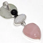 Rose Quartz Rainbow Moonstone 925 Silver Plated Long Pendant 2.7" Gifts JW