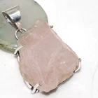 Rose Quartz Rough 925 Silver Plated Gemstone Pendant 1.4" Superb Jewelry JW