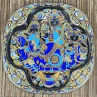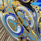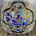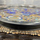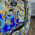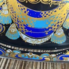 Stunning !! This piece of Bjorn Wiinblad's 1978 Glass Collection was done for Rosenthal's Studio Line. This Collectors Plate shows the three Wiseman (Magi) Caspar, Melchior and Balthasar, who traveled to pay homage to the infant Jesus and brought gifts of gold, frankincense and myrrh. You can see one King astride a horse, one on an elephant holding a goblet full of jewels and a third holding what looks to be a necklace. The plate is wonderfully colored in Shimmering Gold, Turquoise and Royal Blue. Lots of details, swags, tassels. Printed on the plate in German is "Weihnachten 1978" in observance of what is commonly known in English as Christmas. Also you'll see Bjorn Wiinblad's Signature, a very famous Danish Artist whom designed this collection, on the front of the plate. The shape of the plate is a Squircle (square with rounded edges) with a Quatrefoil Recessed center. You'll notice in the photos that this glass is very thick (weighing over 3 pounds). The Glass Plate comes with a Black Back Plate to use as a backdrop. Measurement is approximately 11 3/8" x 11 3/8" The back of the plate is stamped with "Limitierte Kunstreihen" a German phrase that translates directly to "Limited Art Series". The Rosenthal Company was first founded in 1879 by Phillip Rosenthal in Bararia, Germany. Rosenthal is known for its high quality dinnerware, giftware and interior collections. An absolute must have for those collectors of German Art. (See my other listings for the full collection)