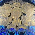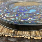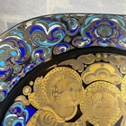 Stunning !! This 1979 Bjorn Wiinblad's Glass Collection done for Rosenthal's Studio Line is just beautiful. This Collectors Plate shows "The Holy Family" on top in Gold being adored by two Angels at the bottom. Beautifully colored in Turquoise, Shimmering Gold and Royal Blue. A lot of detail and beautiful Motifs filling the entire piece. Printed on the plate in German is "Weihnachten 1979" in observance of what is commonly known in English as Christmas. Also you'll see Bjorn Wiinblad's Signature, a very famous Danish Artist whom designed this collection, on the front of the plate. The shape of the plate is a Squircle (square with rounded edges) with a circle recessed center. You'll notice in the photos that this glass is very thick (weighing over 3lbs). The Glass Plate comes with a Black Back Plate to use as a backdrop. Measurement is approximately 11 1/4" x 11 1/4" The back of the plate is stamped with "Limitierte Kunstreihen" a German phrase that translates directly to "Limited Art Series". The Rosenthal Company was first founded in 1879 by Phillip Rosenthal in Bararia, Germany. Rosenthal is known for its high quality dinnerware, giftware and interior collections. An absolute must have for those collectors of German Art. Perfect Condition !! (See my other listings for the full collection)