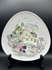Vintage 1960s Decorative Plate by Rosenthal. Designed by Bele Bachem Excellent condition, no chips or cracks The is one of two similar Rosenthal Plates in my eBay shop that have been designed by Bele Bachem for Rosenthal, Germany They both date to the 1960s - and are fully marked to the back of each plate, as photographed. The plates are made of porcelain and are triangular in shape with three rounded corners. This one features a pretty young girl in pedal pusher slacks, a pink blouse and a large sun hat. She is resting in an orchard in the mid-day sun. There is a tree covered with flitting birds to the right - and in the mid-distance, there is a little man sitting in a horse-drawn cart and going along a dust road in the fields and towards the hills in the far distance. Each side of the plate is 7 3/4 inches. It is in good condition with no damages or condition issues.