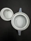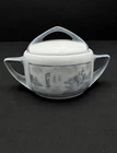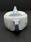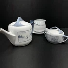 This Rosenthal Donatello Tea Set is a beautiful addition to any collection. The set includes a medium-sized pot with a blue and white windmill pattern, lids, sugar bowl, creamer, and six cups. The pieces are made of high-quality porcelain and are perfect for all occasions. The set has a vintage feel, dating back to Germany's nature-inspired style. The set is original and licensed reproduction, making it a collector's item for tea enthusiasts. Add this to your kitchen or display it in your home as a collectible piece.