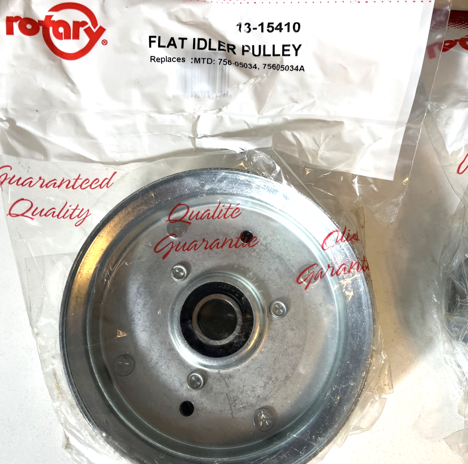 Rotary outdoor power equipment service parts #13-15410 flat Idler pulley replaces MTD 756-05034, 75605034A. Pulley is new in package
