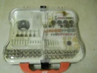 Rotary Tool Accessory Set 200+ Pieces Pre-owned condition. Appears to be missing about 12 pieces out of 271. Being sold as is. Please see pictures for missing slots. Comes in plastic storage/carry case that opens on each side. ********************************************************** PLEASE READ : I buy mostly estates, close outs, shelf pulls, and auction items. As the history of the item is not always known. I will describe all of my items listed to the best of my ability, if there are any flaws to the item it will be noted in the listing and photos of the flaw shown. At times I may miss a flaw, as I am only human. Please contact me and I will make it right and make sure that you are happy with you interaction and purchase from Big Man Tim's Treasures. Please see all photos and ask any qu estions BEFORE purchasing. FREE SHIPPING! Love this item? Check out the other items in my Ebay store! Please check back on a regular basis, as we list new items daily!! 041024EP