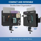 -Clamp-on Desk Pegboard – 360 Degree Rotatable, Desk-Mount – Desktop Gaming S1-Rotating-Black Effortless Pegboard Organization – Pegboard attaches securely to desk, creating a stylish and tidy workspace or privacy shield. Reduces clutter and makes finding items a breeze. Perfect for hanging headphones, storing pens, markers, and scissors within easy reach. Keep notes conveniently visible. Boost productivity and reduce with a more organized setup. Installs in Seconds - No drilling or nailing needed. This C-lamps onto your desk for convenient top mount. Fits just about any thickness up to a fat 2.4”. Many customers get several for more extensive organization. Use your imagination to upgrade your desk with added convenience and easier productivity. Large Built-in Storage - Includes hooks for headphones, designer box for pens, shelf for notebooks, space for notes, and more. Features standard pegboard holes for additional organization with widely available metal hooks. Sturdy Steel Construction - Made with rugged painted steel that will last and look good for years of beneficial use. Much better than fiberboard that chips, cracks, and falls apart with age. This is lightweight with an attractive black color that goes with all decor. So helpful you will wonder how you ever lived without it. Effortless Setup – Installation is a breeze with straightforward instructions for both above and below-desk mounting; Standard peg holes accommodate most pegboard hooks available, offering limitless possibilities for display and organization.