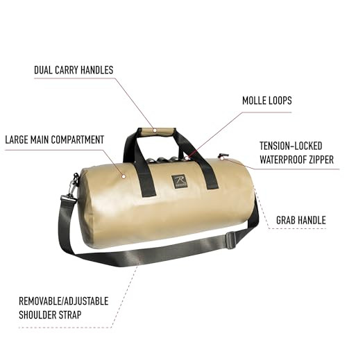 Rothco Black Waveguard Waterproof Duffle Bag 12430. Engineered with a heavy duty three-layer waterproof vinyl tarpaulin shell and waterproof zipper, the watertight duffle bag ensures your gear and essentials remain secure, organized, and dry. As part of rothcos wave guard collection, this waterproof bag is fully submersible and meets ipx7 waterproof standards, ideal for water sport enthusiasts, outdoor adventurers, and avid travelers.